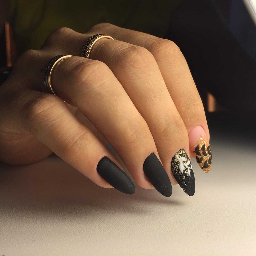 Чтобы на длинных ногтях черный цвет не выглядел вульгарно, важно правильно подобрать форму, и отнестись к этому с должным вниманием. Черный цвет акцентирует недостатки ногтевой пластины