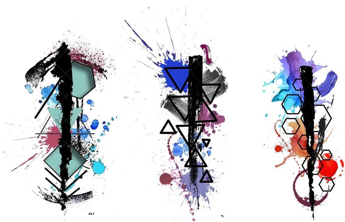 Чёткой трактовки такие тату не содержат. Они служат для передачи не конкретного смысла, а общего настроения, выражающегося в форме линий, цветов и углов.