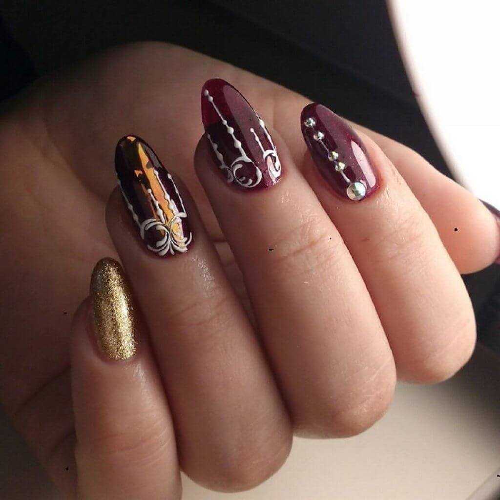 Для дизайнерского исполнения требуются бисер, стразы. Элементы золотого оттенка востребованы, ведь они преображают ногти. Для маникюра учитывают важные нюансы для создания стильного дизайна с учетом умеренности и законов красоты.
