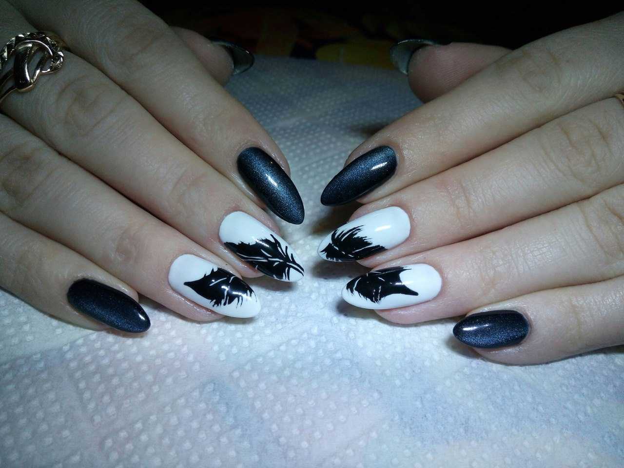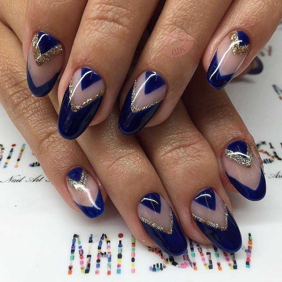 Говоря о сочетании цветов, нельзя не упомянуть о черно-синем маникюре. Этот вариант всегда смотрится по-особенному стильно.