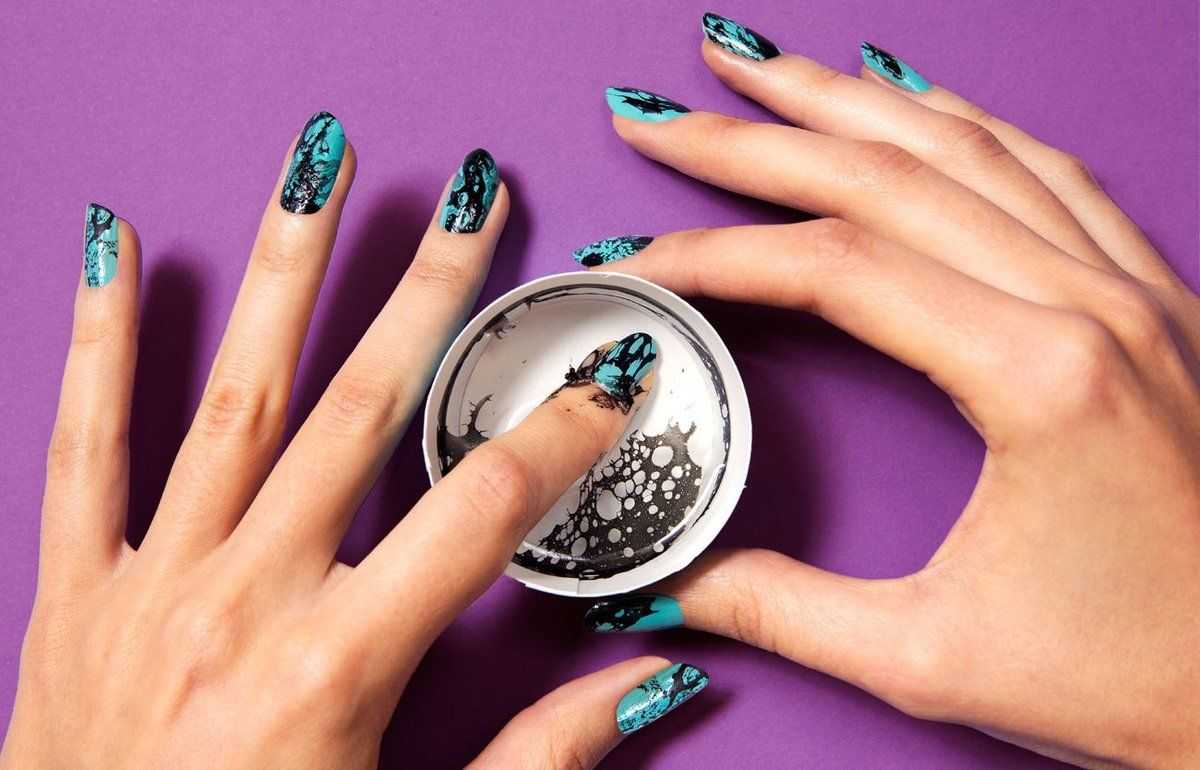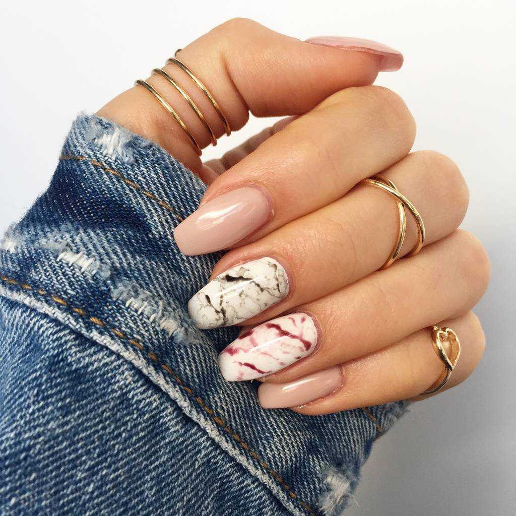 Мраморный маникюр. Элегантное исполнение дизайна удивляет девушек. Результат визуально напоминает мрамор.