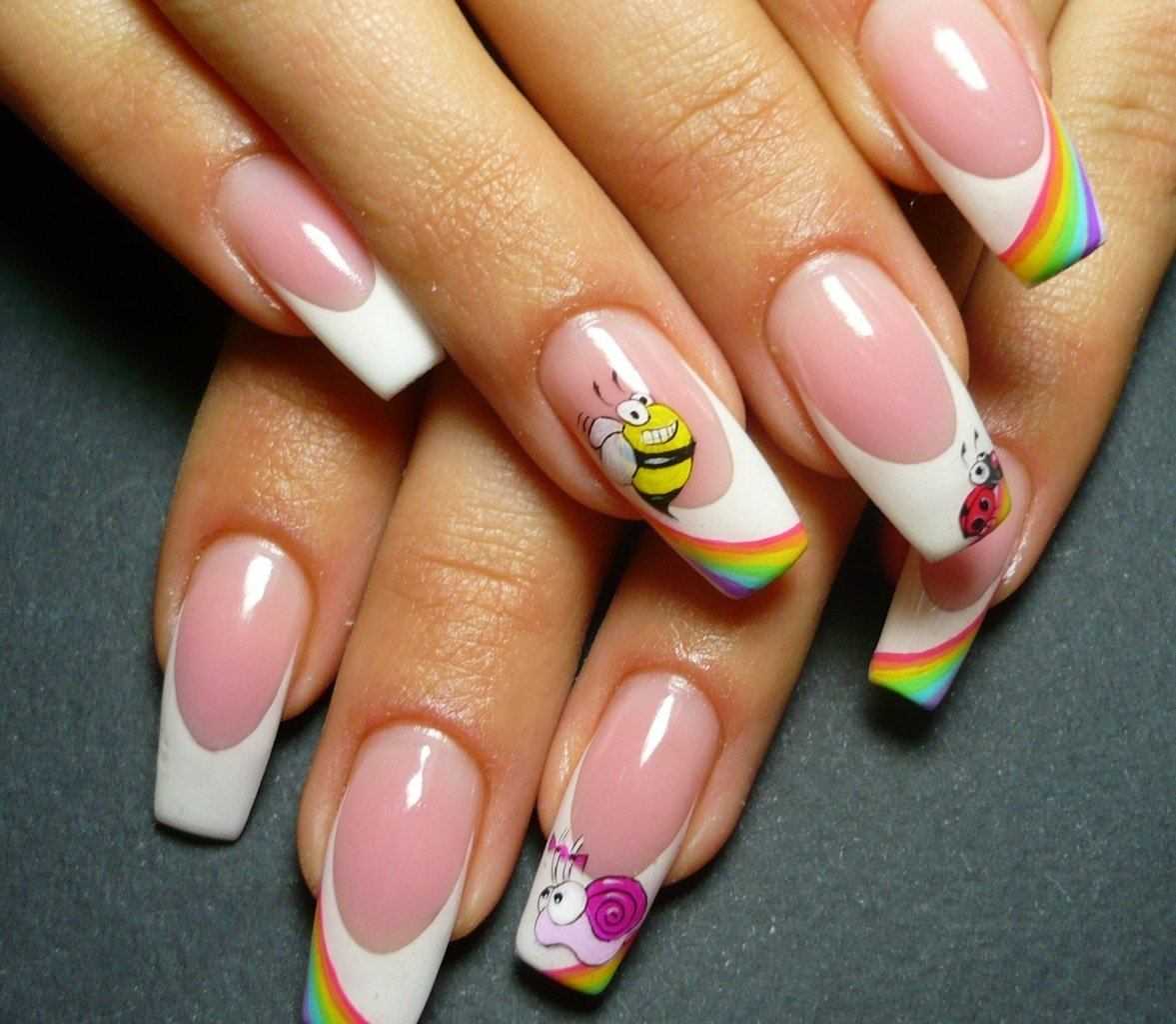 - нанесение полного спектра цветов радуги на каждый ноготь девушки;