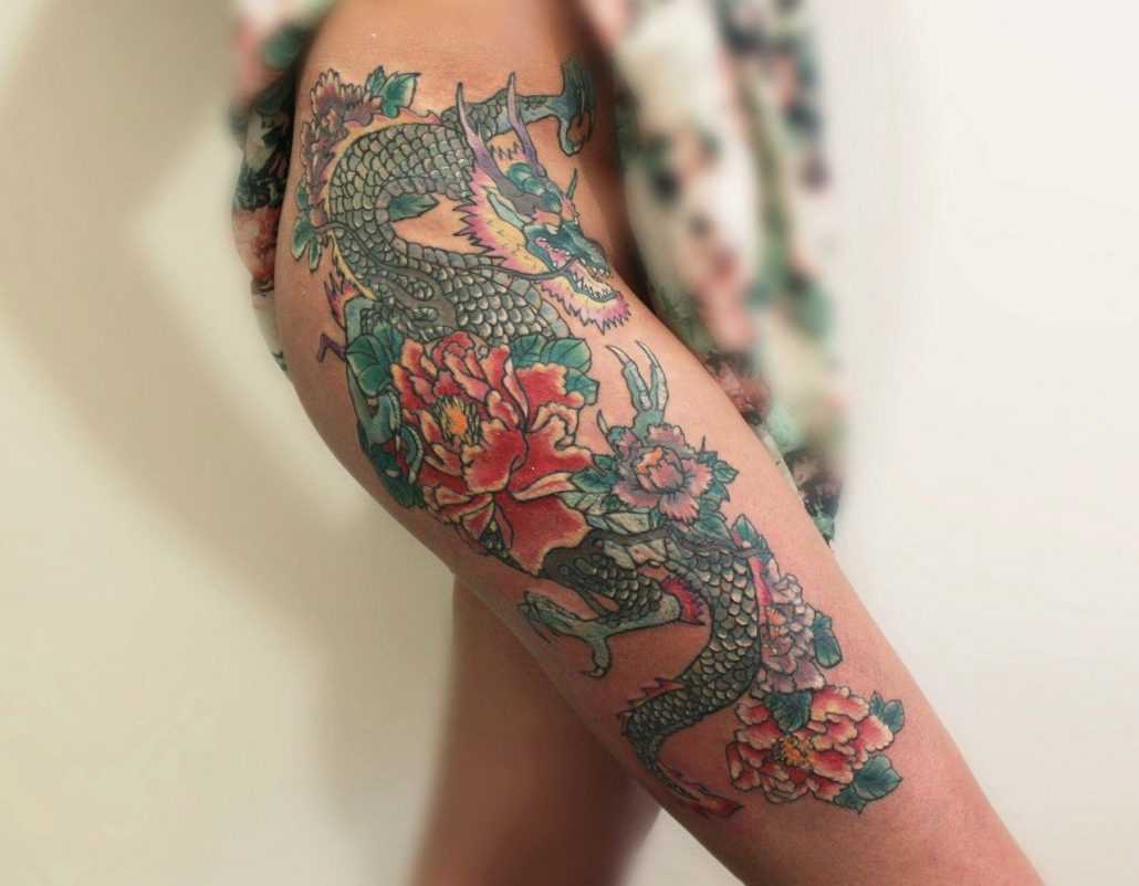 Бедро – самая широкая часть ноги, поэтому считается одним из самых любимых мест для татуировки. Женские бедра – это не просто часть тела, а настоящий символ, в котором сконцентрирована женская сексуальность и грация. Вот почему представительницы прекрасного пола так часто стремятся подчеркнуть и украсить эту часть своего тела.