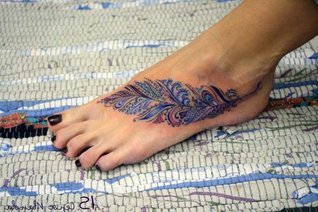 Процесс выполнения татуировки на подъеме стопы также доставит вам массу неприятных ощущений, так как здесь отсутствуют мягкие ткани. К тому же в теплое время года, у вас могут возникнуть сложности с выбором обуви, так как в некоторых моделях рисунок может быть частично скрыт.