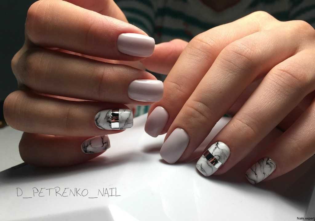 Безупречный, изысканный дизайн для настоящих леди – это конечно же мраморный эффект. С каждым сезоном он становится все более актуальным. Абстрактные разводы, сочетание нескольких оттенков и небольшие вкрапление блесток – все это делает дизайн еще более привлекательным.