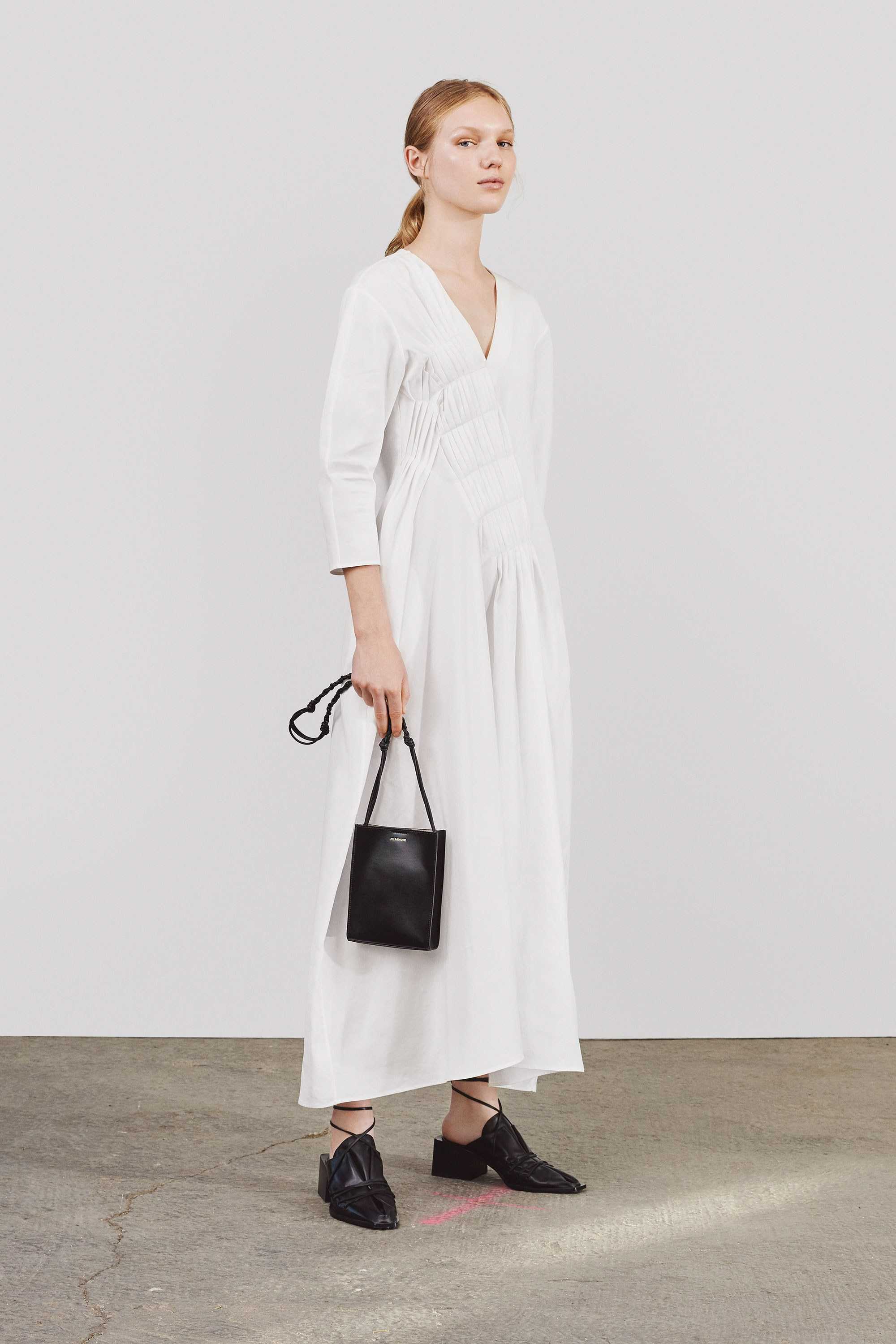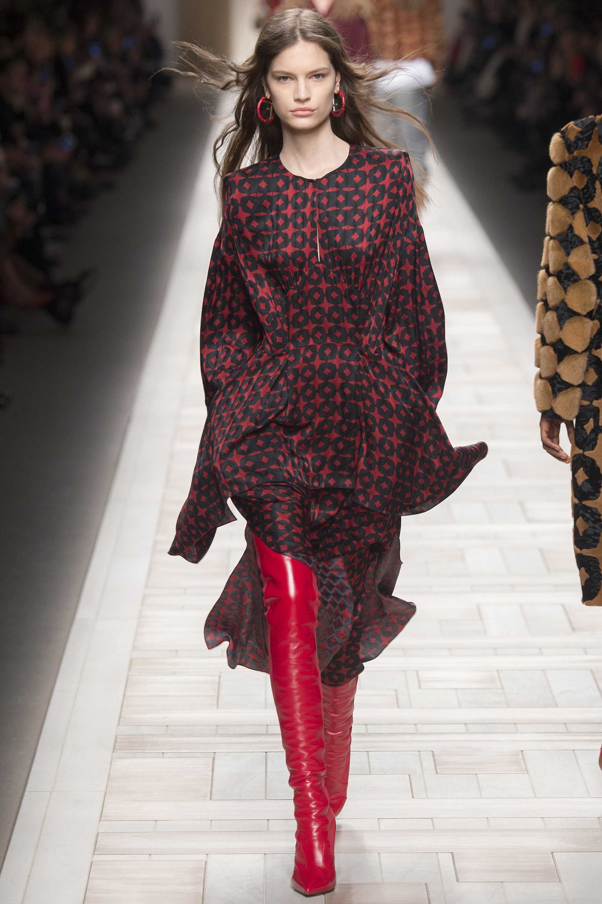 Идеи для гардероба: ботфорты на шпильке (Balenciaga), тотал-лук – пальто, брюки и блуза (Nina Ricci), платье в греческом стиле (Valentino).