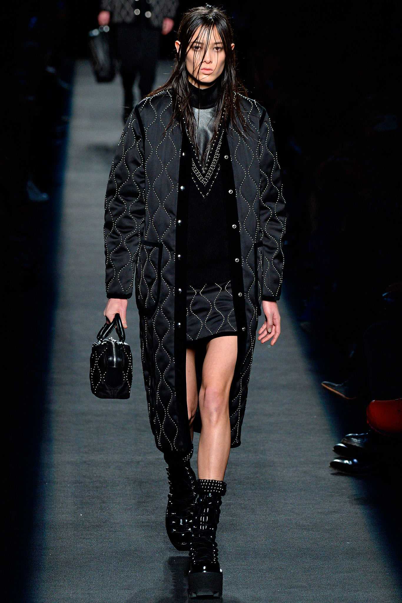 Идеи для гардероба: длинное пальто (Balenciaga), облегающая юбка (Fendi).