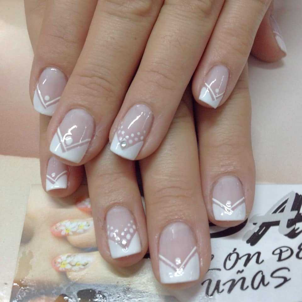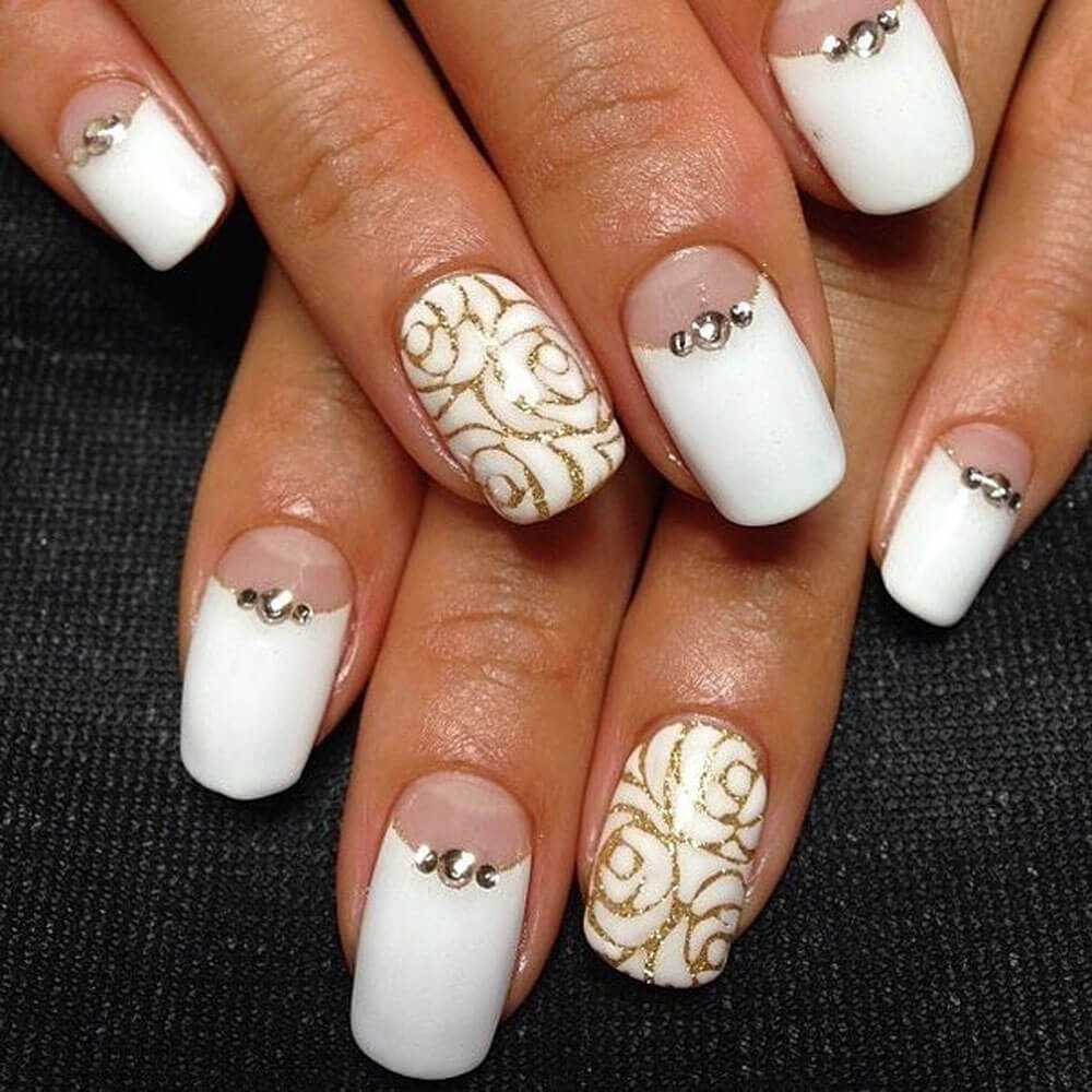 Четкие линии лунки ногтя можно заменить различными глиттерами или рисунками.