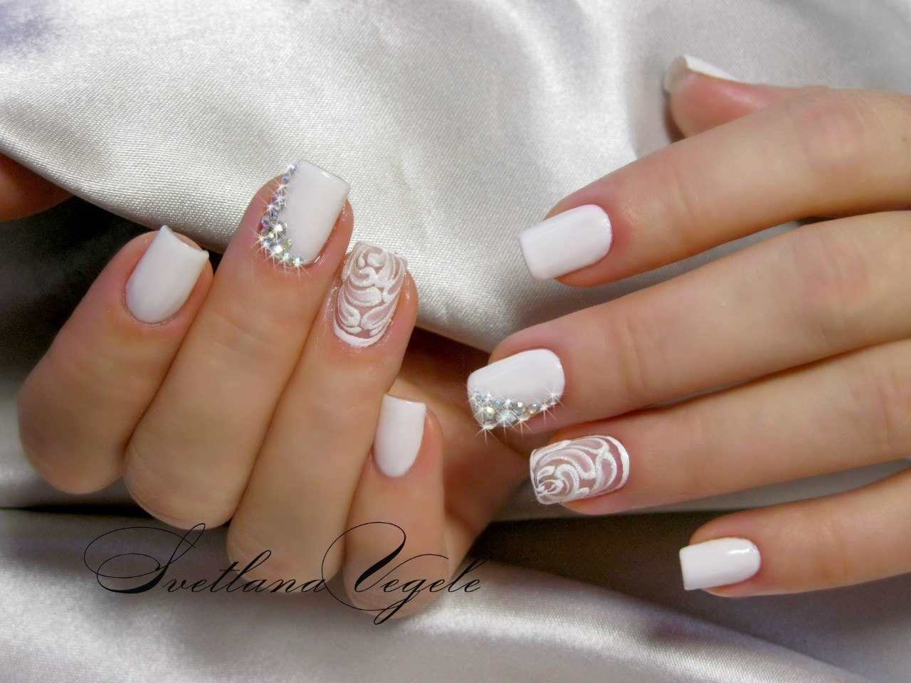 При этом совсем не обязательно декорировать все ноготки. Выделите, к примеру, безымянный палец, на который будет одето обручальное кольцо.