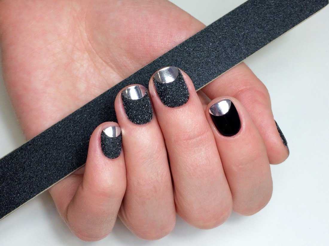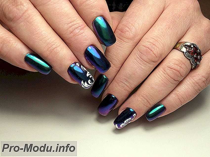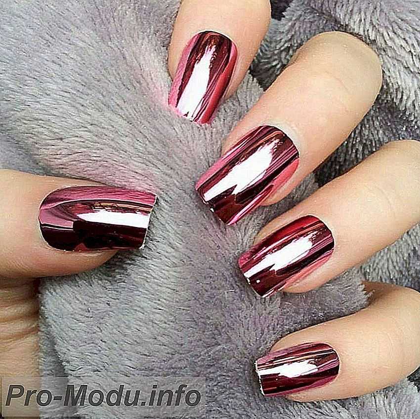 Необычность такового нейл-арта заключается в использовании специального покрытия, которое визуально припоминает зеркало либо отшлифованный металл.