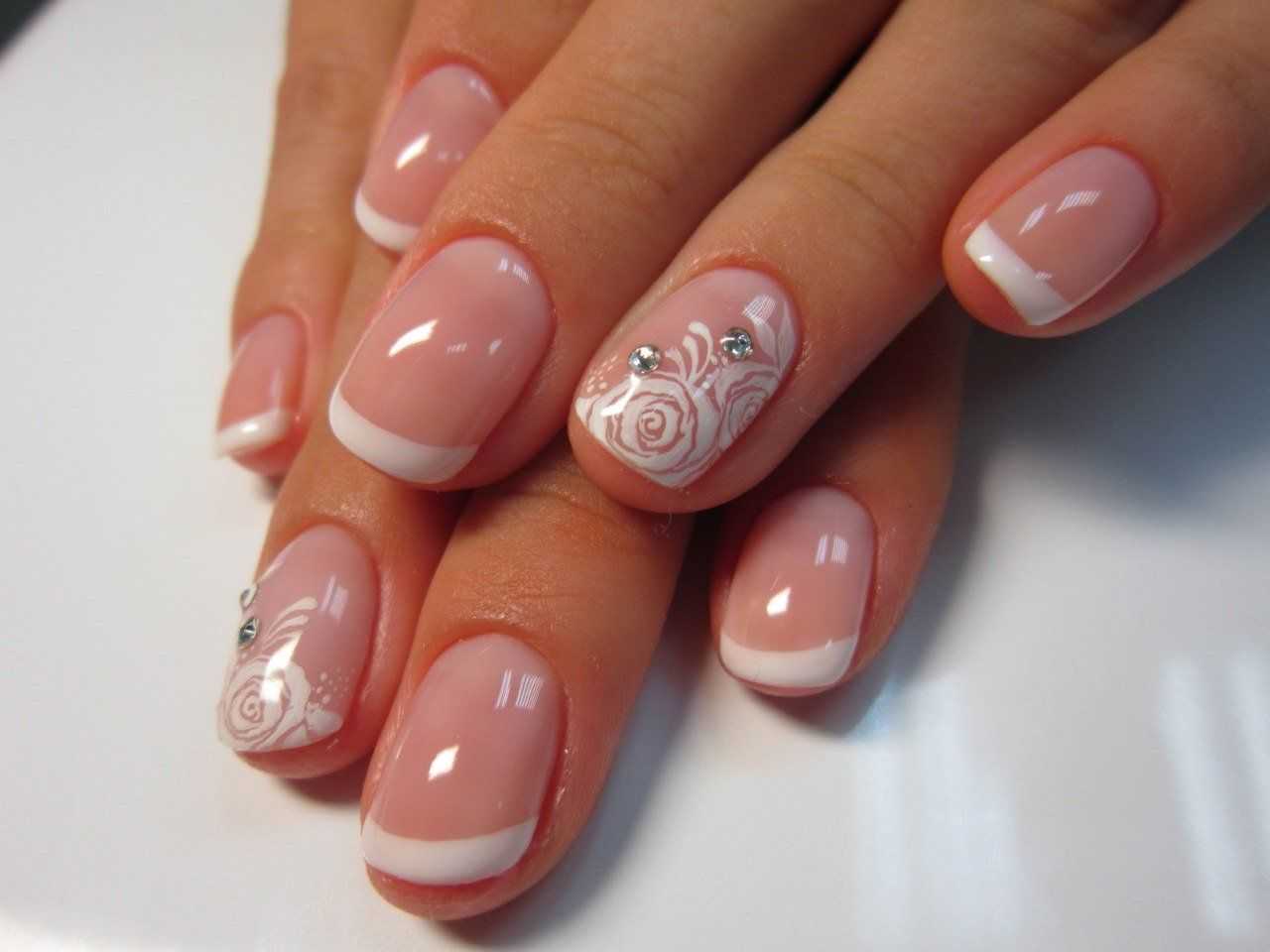 Для декорирования французского или лунного свадебного маникюра используются хрустальные, стеклянные или пластиковые стразы. Хрустальные стразы, стразы Сваровски смотрятся намного эффектнее обыкновенных, но стоят дороже.