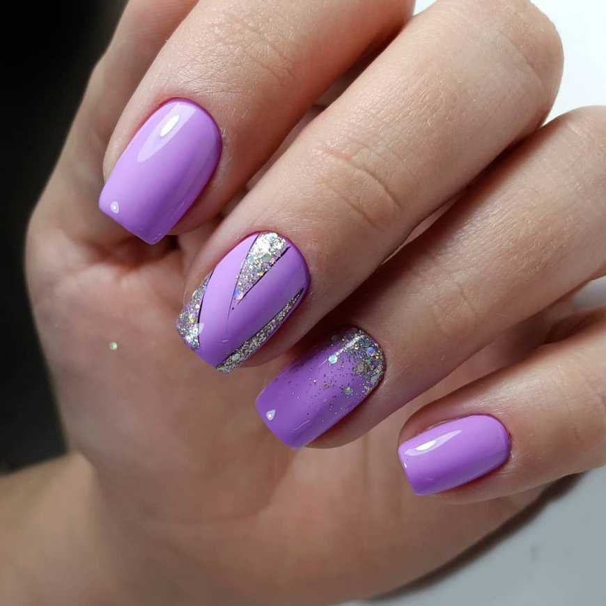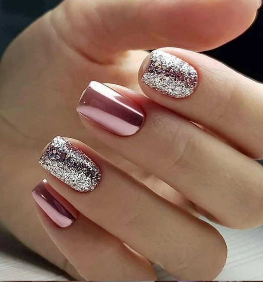 - френч и лунный дизайн с глиттером – смело заменяйте гель-лак на глиттер и украшайте им край ногтевой пластины и прикорневую зону. В повседневных нейл-артах используйте серебряный глиттер, в торжественных – любой оттенок, который подходит под ваш образ.
