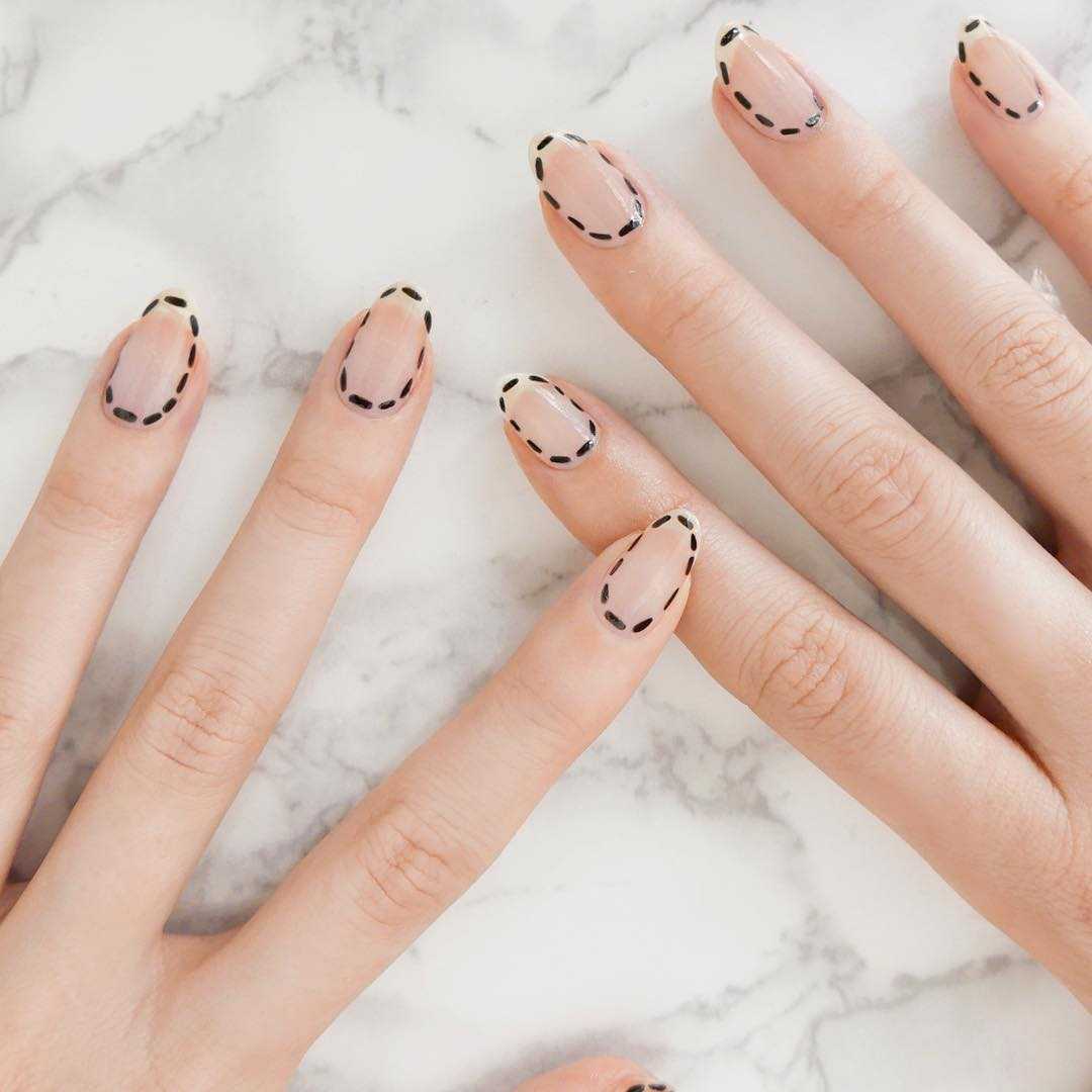 Оригинальным методом украсить ногти в 2018 году станет создание рамки. С помощью контрастного лака по периметру ногтевой пластины рисуется рамка. Добиться идеально ровных линий может лишь опытный мастер.