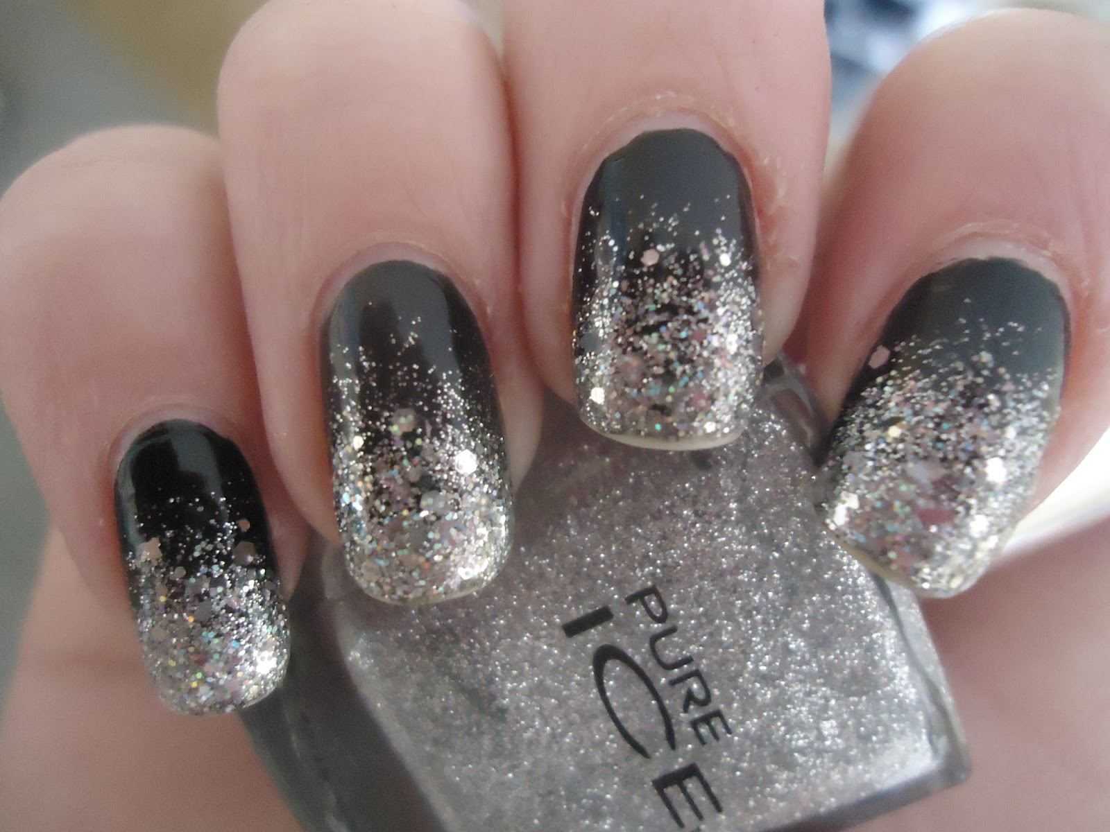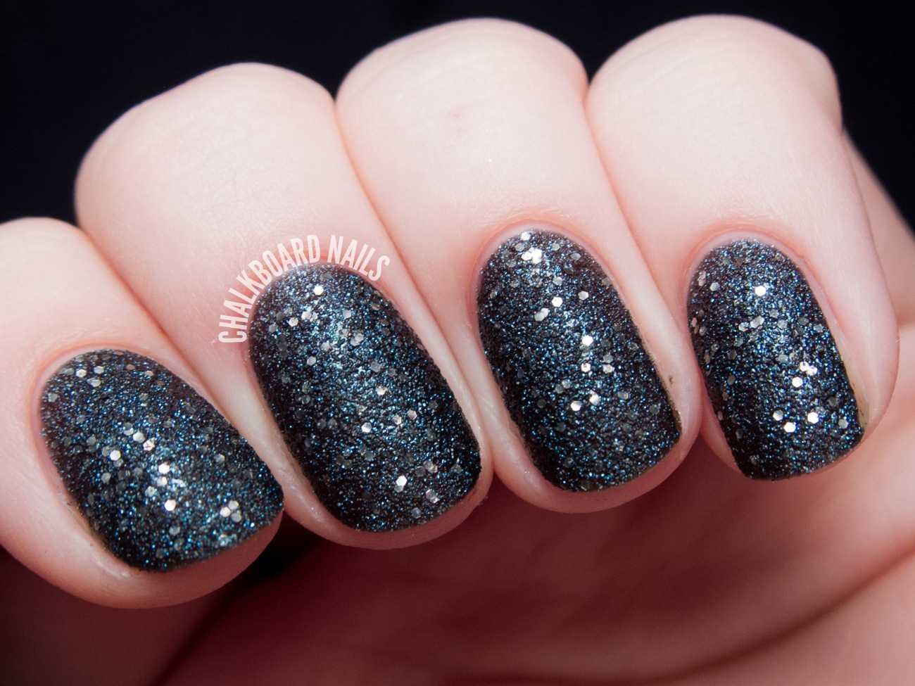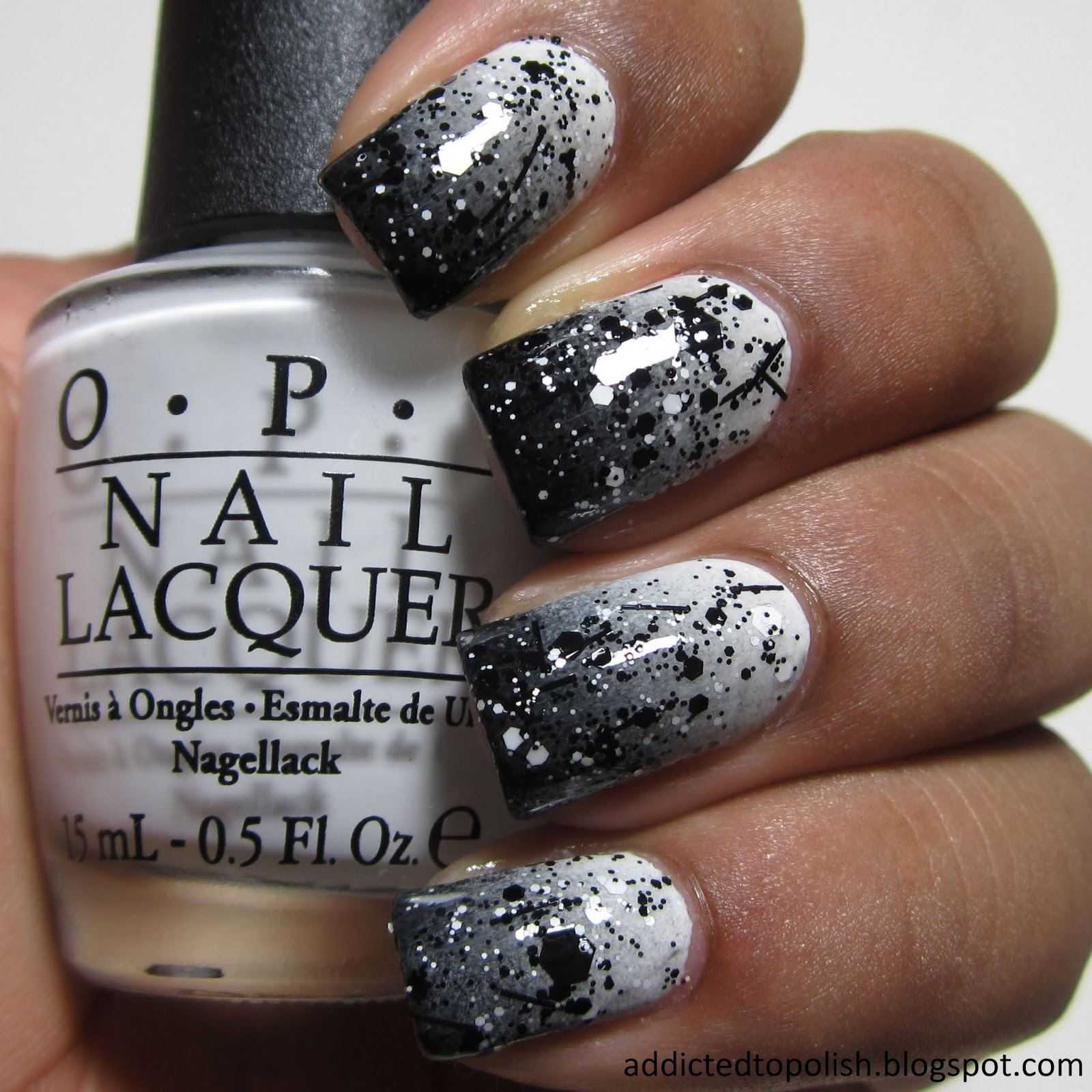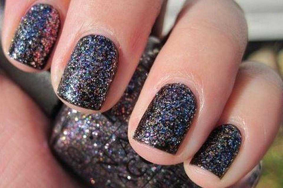 Блестки прекрасно сглаживают мрачность черных ногтей и акцентируют внимание на элементах дизайна. В качестве графического орнамента можно использовать хаотичные линии, геометрические формы, рассеянные узоры