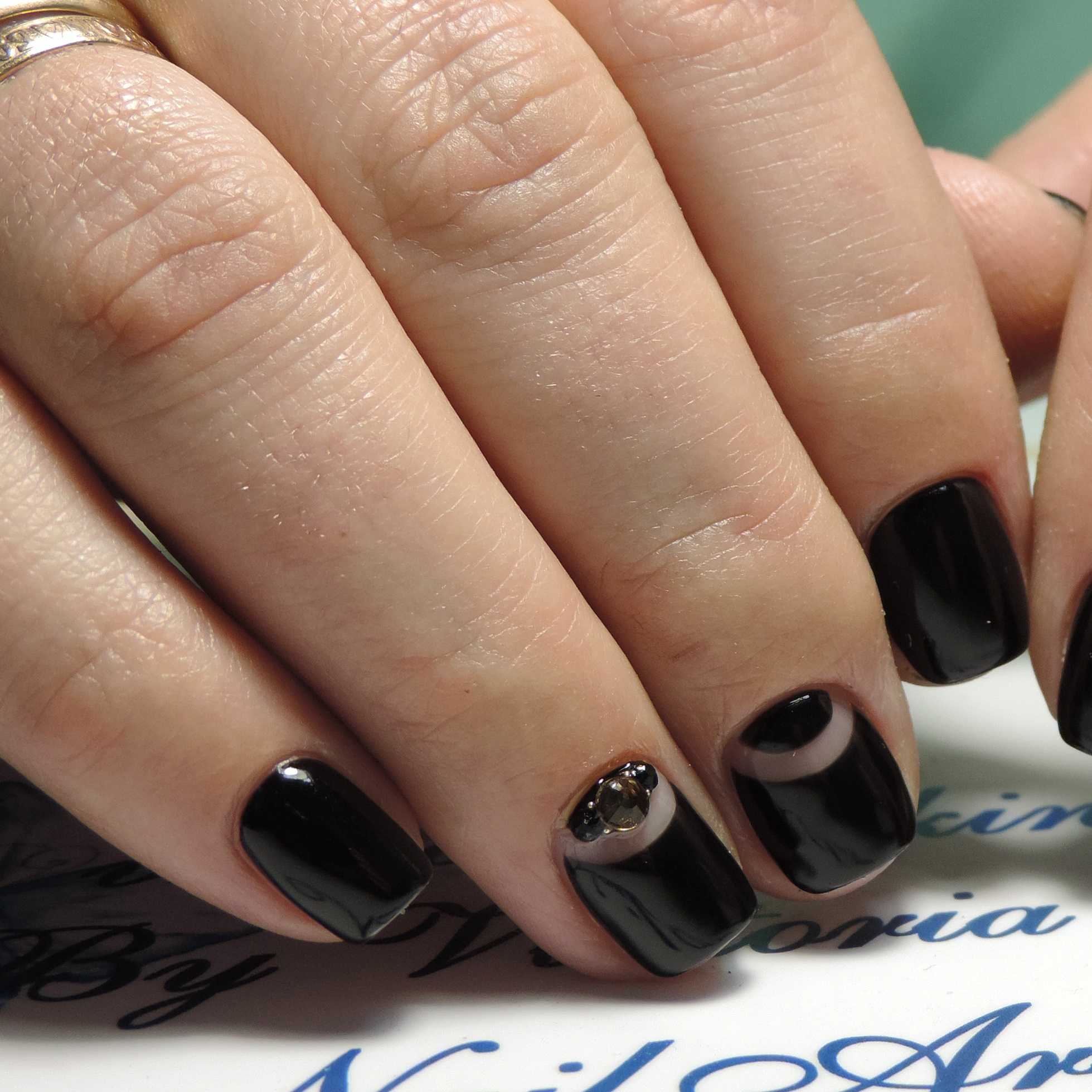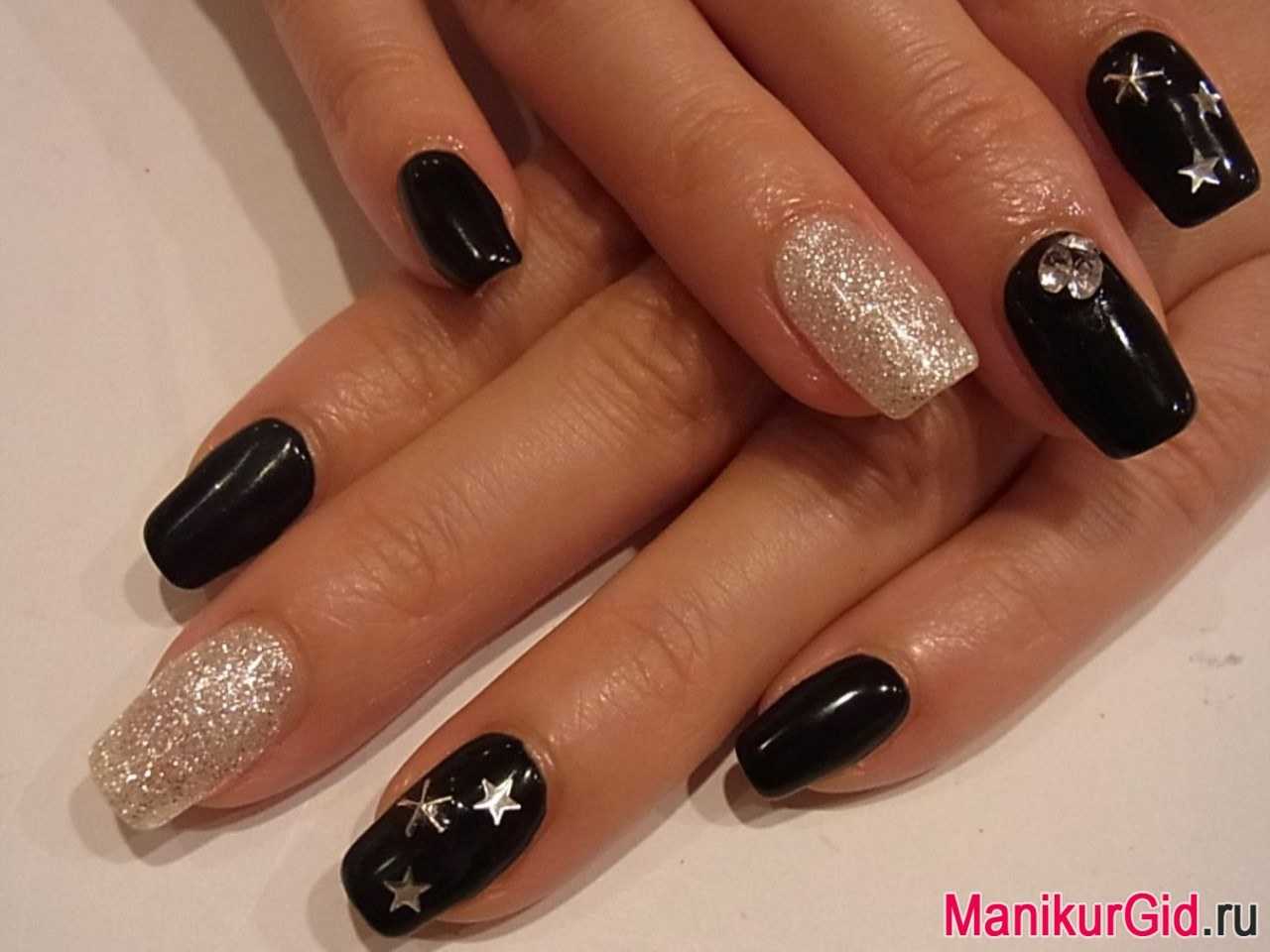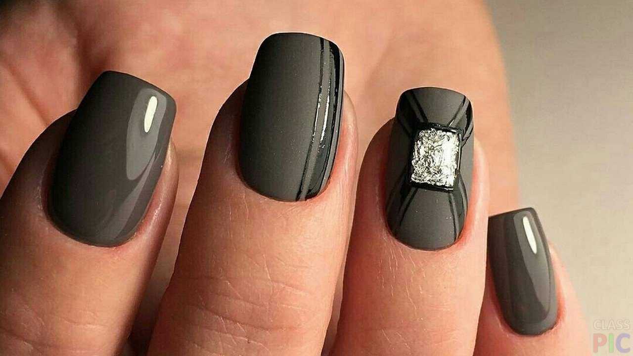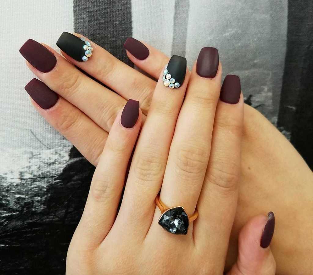 Темный маникюр с элементами декора на длинные и короткие ногти