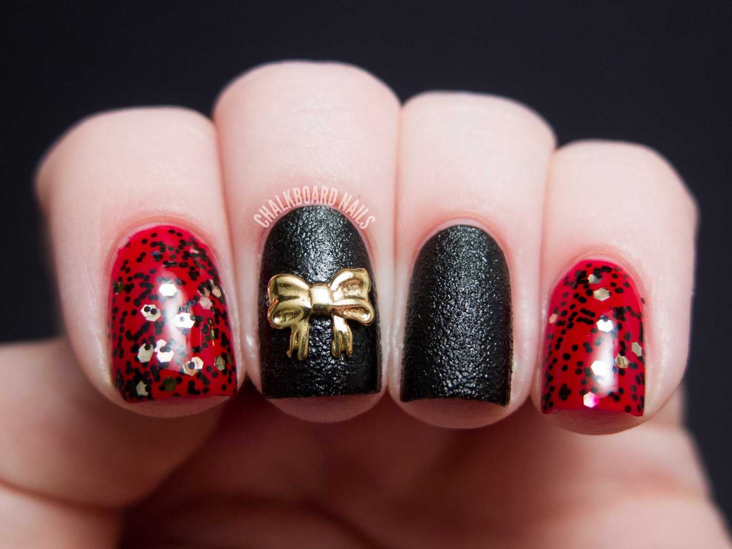 Если вы категорически против черной одежды и скучных образов, то сочетайте черные ногти с каким-либо элементом вашей одежды. К примеру, бант на блузе, пояс, рисунок на платье и т.д.