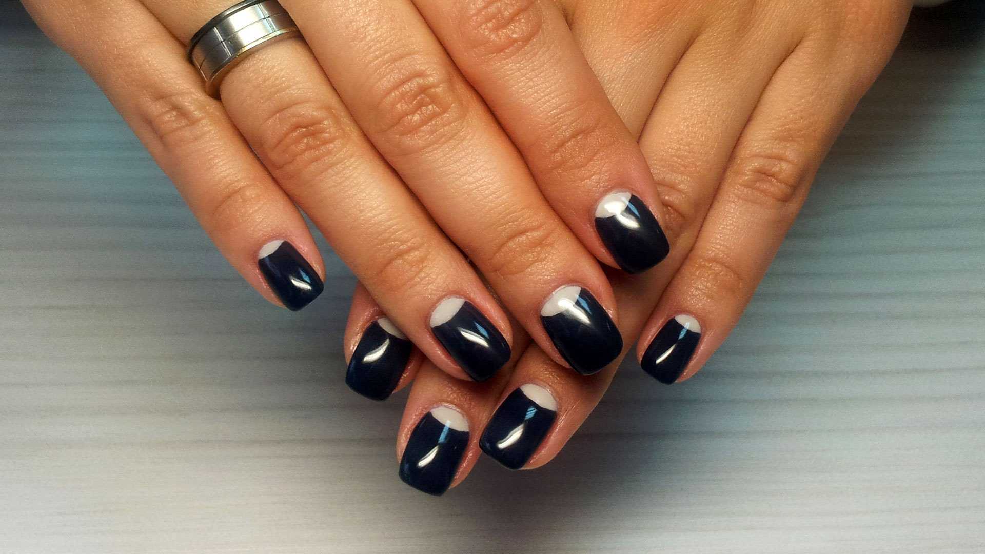 Тёмный маникюр совместно с Френч и Лунным маникюром.