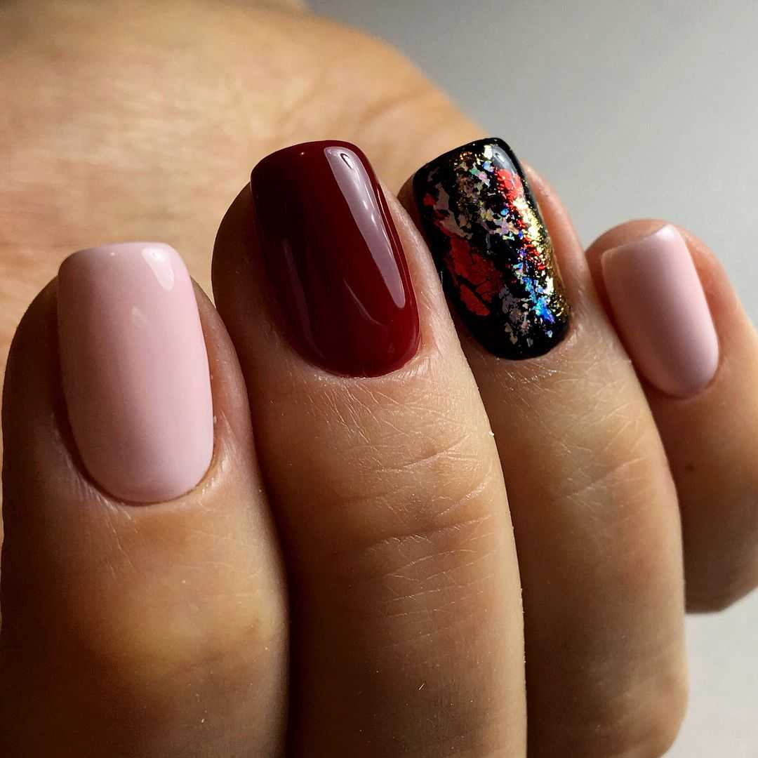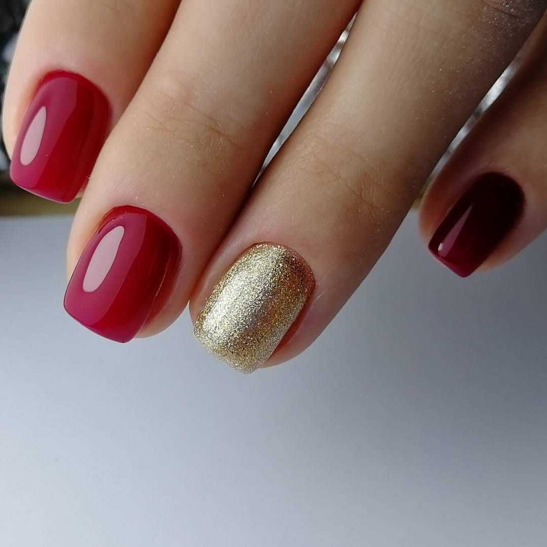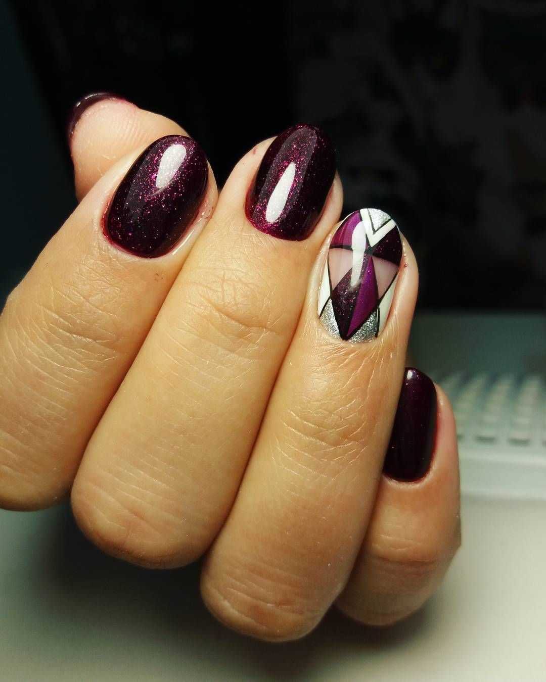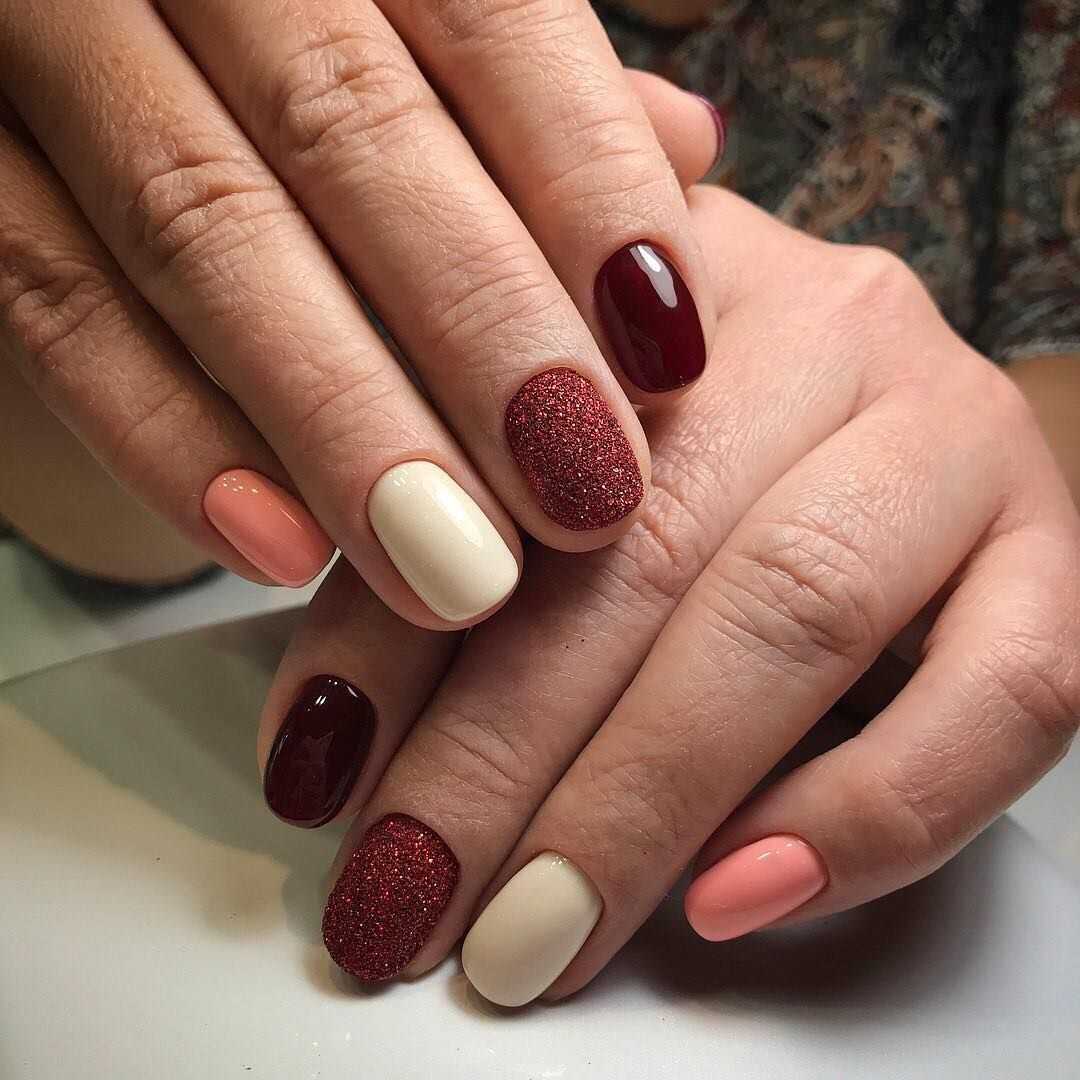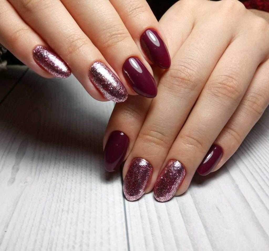 Любительницы насыщенных цветов не должны расстраиваться: яркая гамма в этом году приветствуется, более того, незаменима в праздничных вариантах маникюра. Например, дизайн в холодных красных, бордовых, коричневых тонах с блестками/фольгой на пике популярности этой зимой.