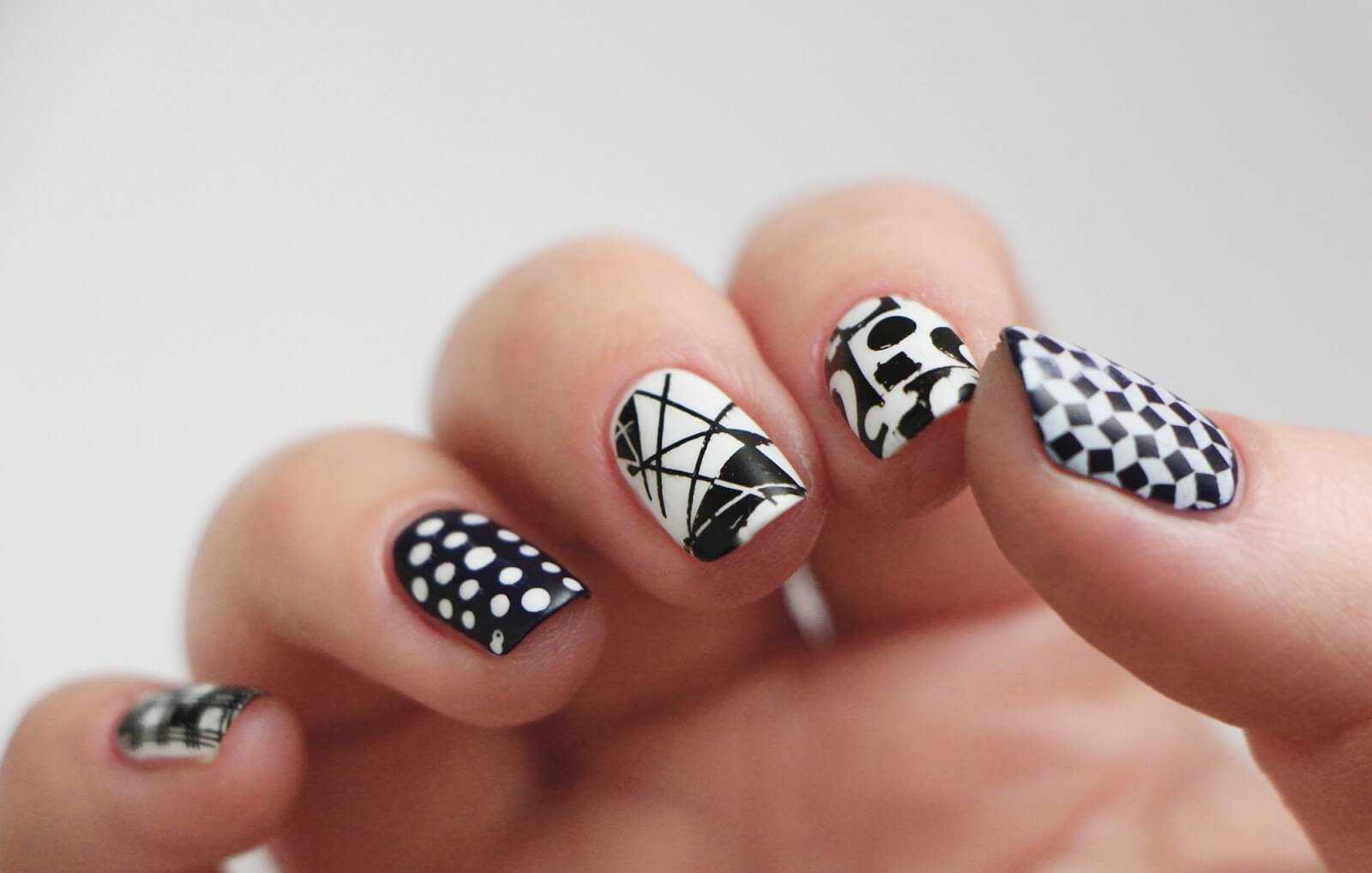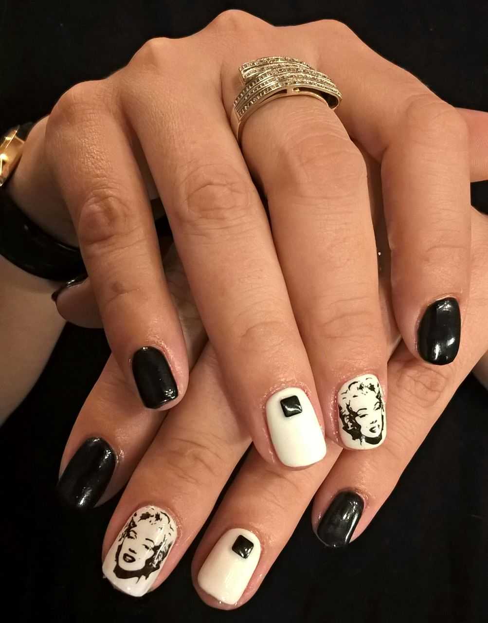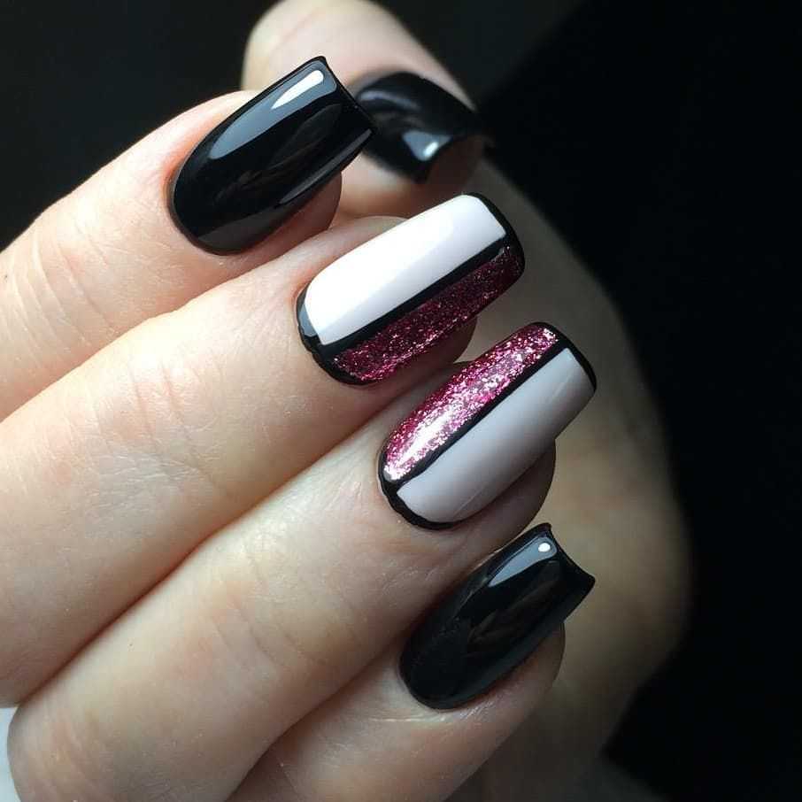 Маникюр в черно-белых цветах востребован всегда, Он универсален, и подходит всем девушкам без исключения. Такой нейл-арт замечателен даже для офисной обстановки. Если же есть потребность придать модному черно-белому маникюру нотку праздничного настроения, то его можно с легкостью дополнить яркими элементами декора, например, стразами или блестками. Очень часто мастера любят имитировать шкуру зебры, используя черно-белую гамму цветов. В таком случае полоски могут абсолютно разными: горизонтальными, вертикальными, волнистыми или прямыми. Также безумно оригинальным вариантом на ноготках смотрится «шахматная доска».