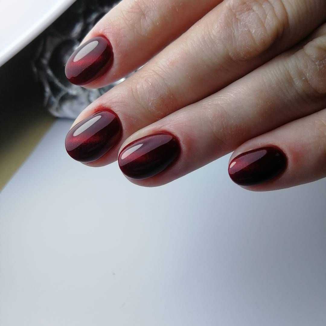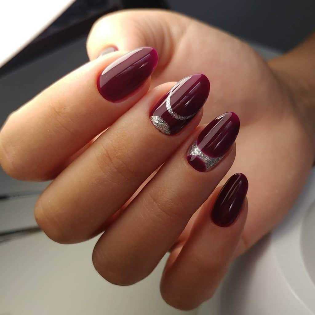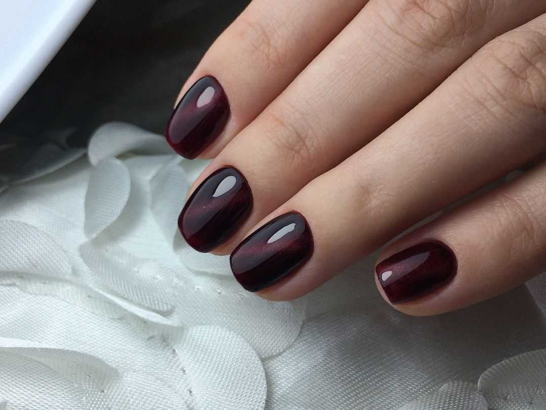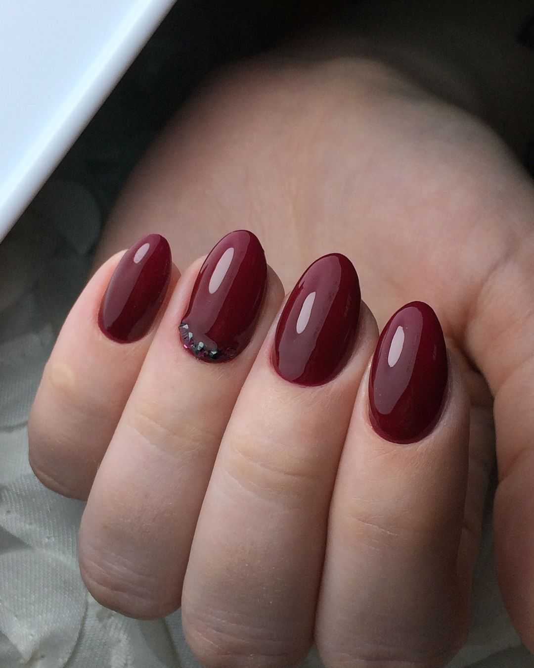 - Бордовый маникюр. Если у жениха галстук такого же оттенка или свадьба оформляется в одном цвете, то это вполне приемлемый вариант. Также цвет лака рекомендуется подбирать, ориентируясь на букет молодой.