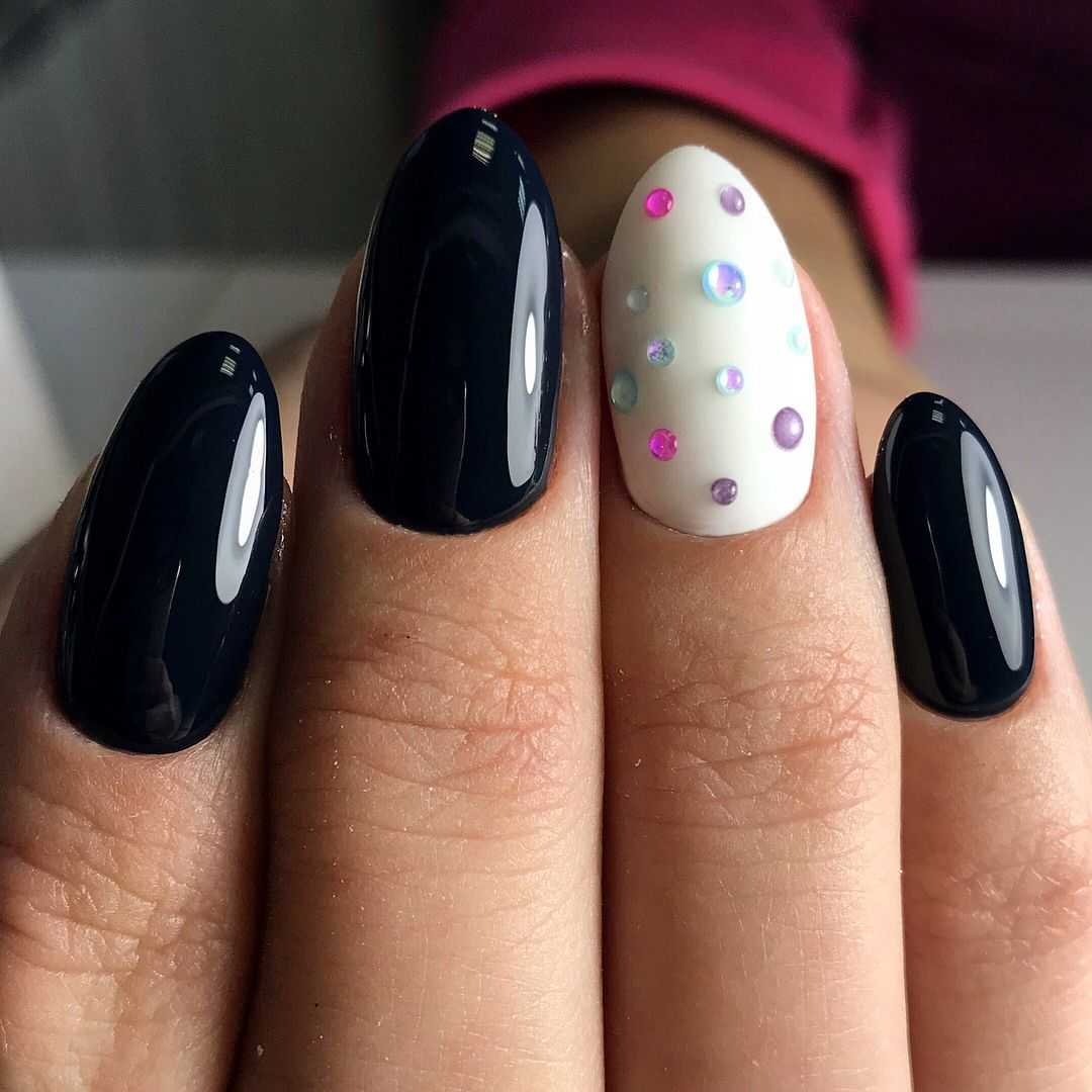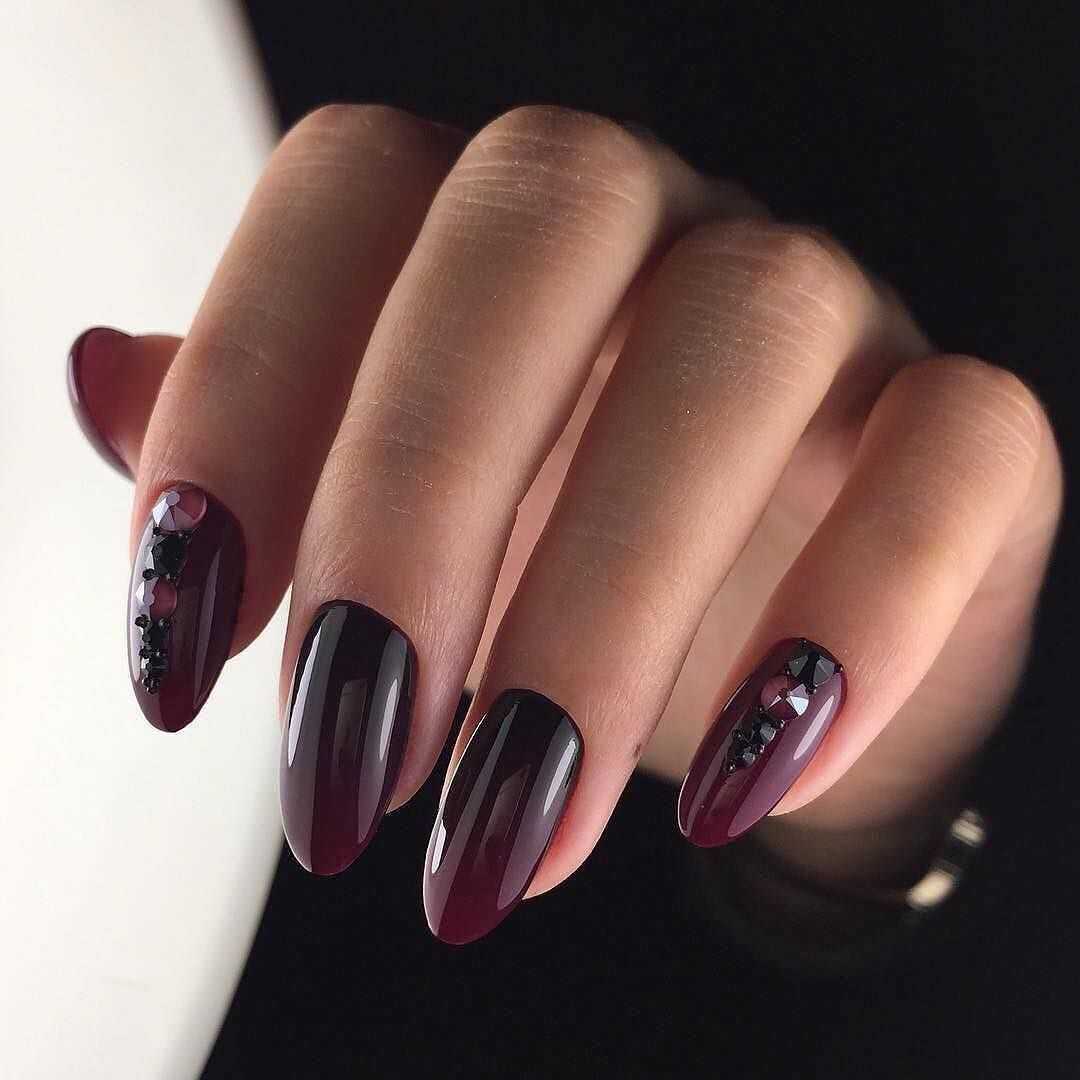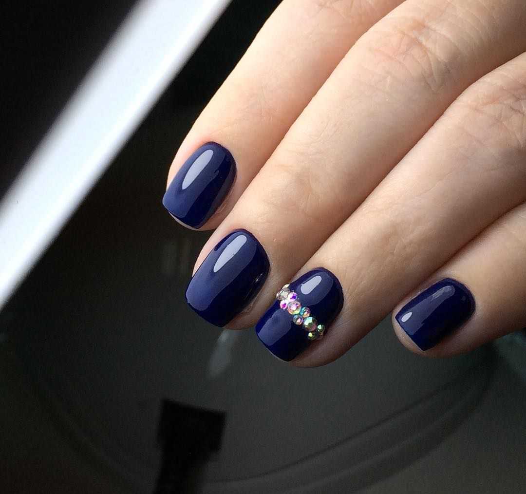 Камни могут быть разных размеров и цветов, дизайн выбирайте исходя из длины ногтей и задумки дизайна. Например, на коротких ногтях красиво смотрятся маленькие камушки, которые могут быть выложены в виде узора или стразами может быть покрыт весь ноготок, но только один, чтобы не перегружать маникюр. На длинных ногтях можно добавить уже больше страз, но все равно, нужно делать акцент на одном-двух ноготках, а не наносить на все ногти. Камни и стразы шикарно смотрятся и на глянцевом покрытии и на матовом.