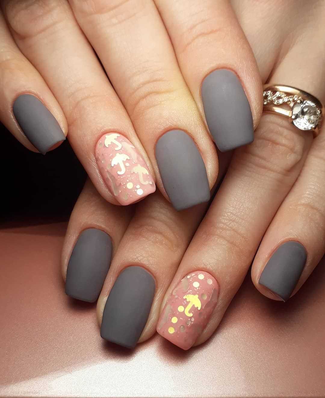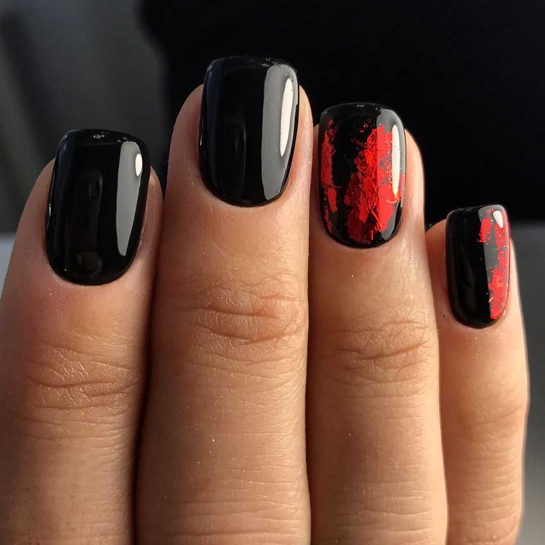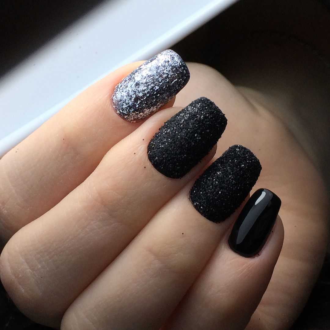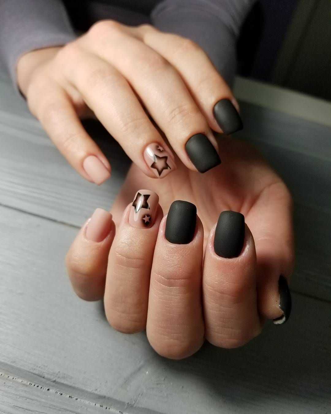 В 2019 году одним из горячих трендов beauty-индустрии считают матовый черный маникюр. Он уже который год радует поклонниц матовых тонов своим разнообразием. Модный матовый маникюр в черном цвете — универсален. Он неброский, не вызывающий и подходит даже для похода на работу. Матовый черный лак отлично дружит с блестками различных тонов и фольгой металлического цвета. Данный маникюр выглядит безупречно на коротеньких ноготках миндальной или овальной формы. Более элегантно и даже немного провокационно смотрится черное матовое покрытия на острых, длинных ногтях. Матовый цвет сам по себе выглядит нежно и скромно, но если вам все же хочется разнообразить монотонность, фантазируйте с дизайном, добавляя разные материалы декора.
