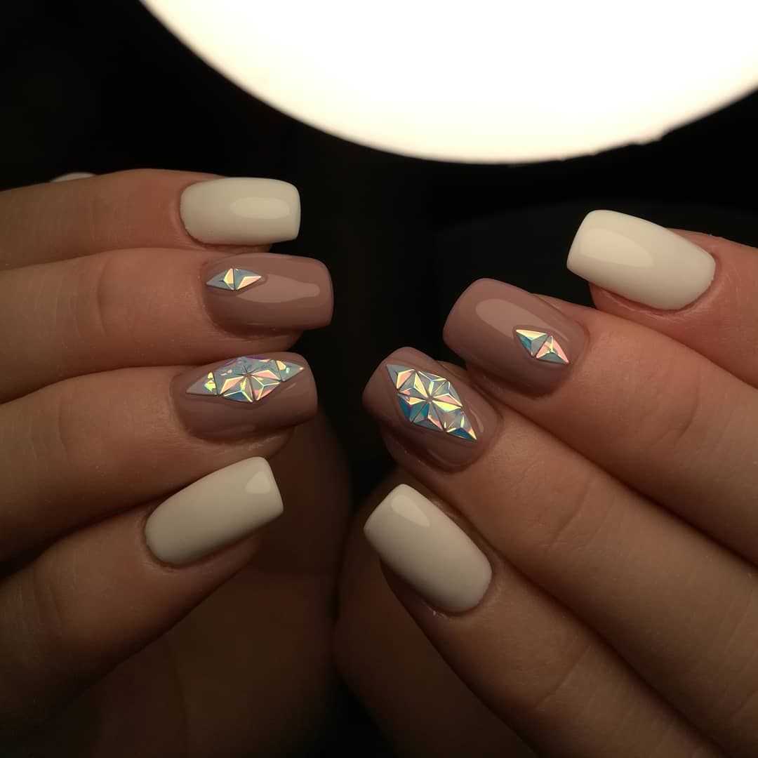 Стразы разных размеров и форм отлично подходят для оформления маникюра. Буквально несколько сияющих камушков вмиг преобразят даже самый простой дизайн. Нейл-мастера всегда отмечают, что именно их используют чаще всего. Ведь из них можно создавать узоры, необычные геометрические фигуры и многое другое.