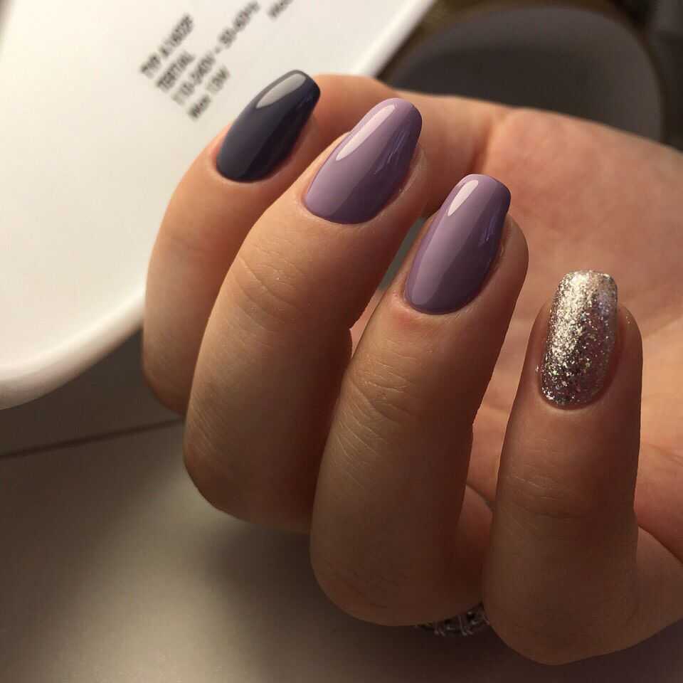 Модные оттенки зимнего маникюра — варианты нежных розовых, нюдовых, молочных, мятных, голубых, серых тонов. Но не только, также актуальны оттенки фиолетового и синего.