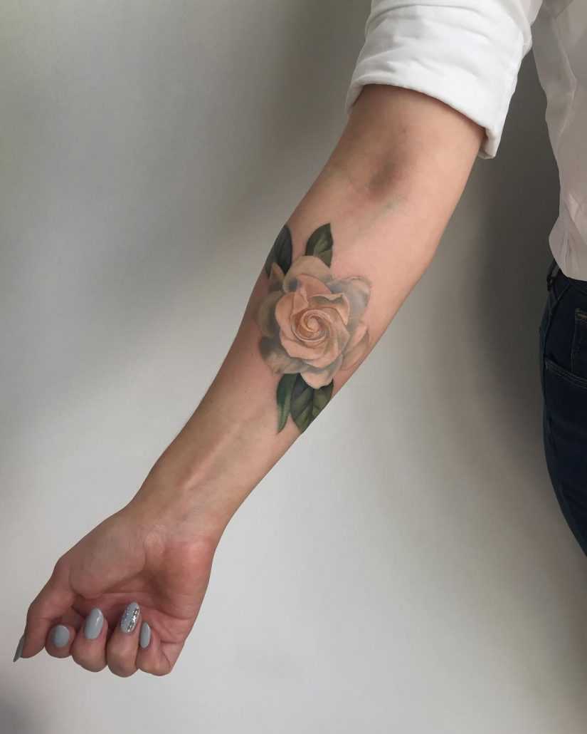 - тату на предплечье с легкостью может перерасти в полноценный рукав;