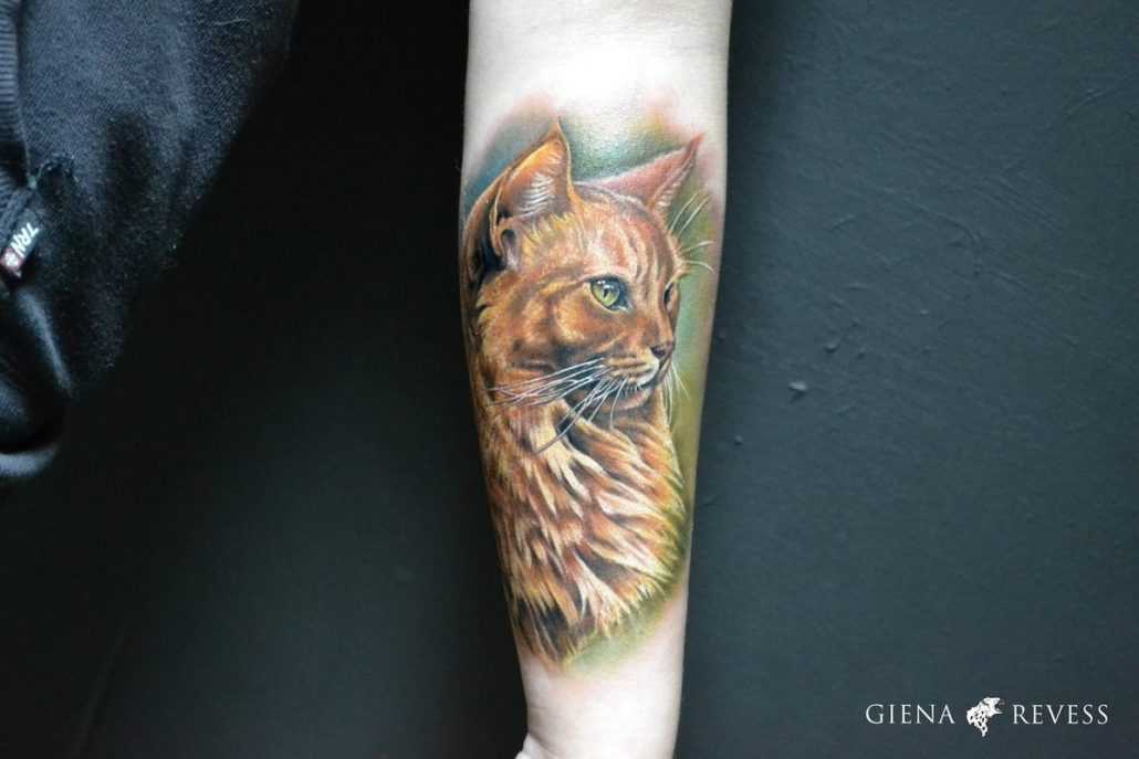 Нередко на предплечье можно увидеть кота, который указывает на независимость и сообразительность обладательницы такого тату. Хотя можно встретить и другие, боле противоречивые трактовки данного изображения. К примеру, у индейцев есть поверье, согласно которому кот является олицетворением злых сил или даже воровства. А вот у греков и римлян это животное ассоциируется со свободой. Если углубиться в религиозный подтекст такого рисунка, то христиане издавна наделяли это животное демоническими силами.