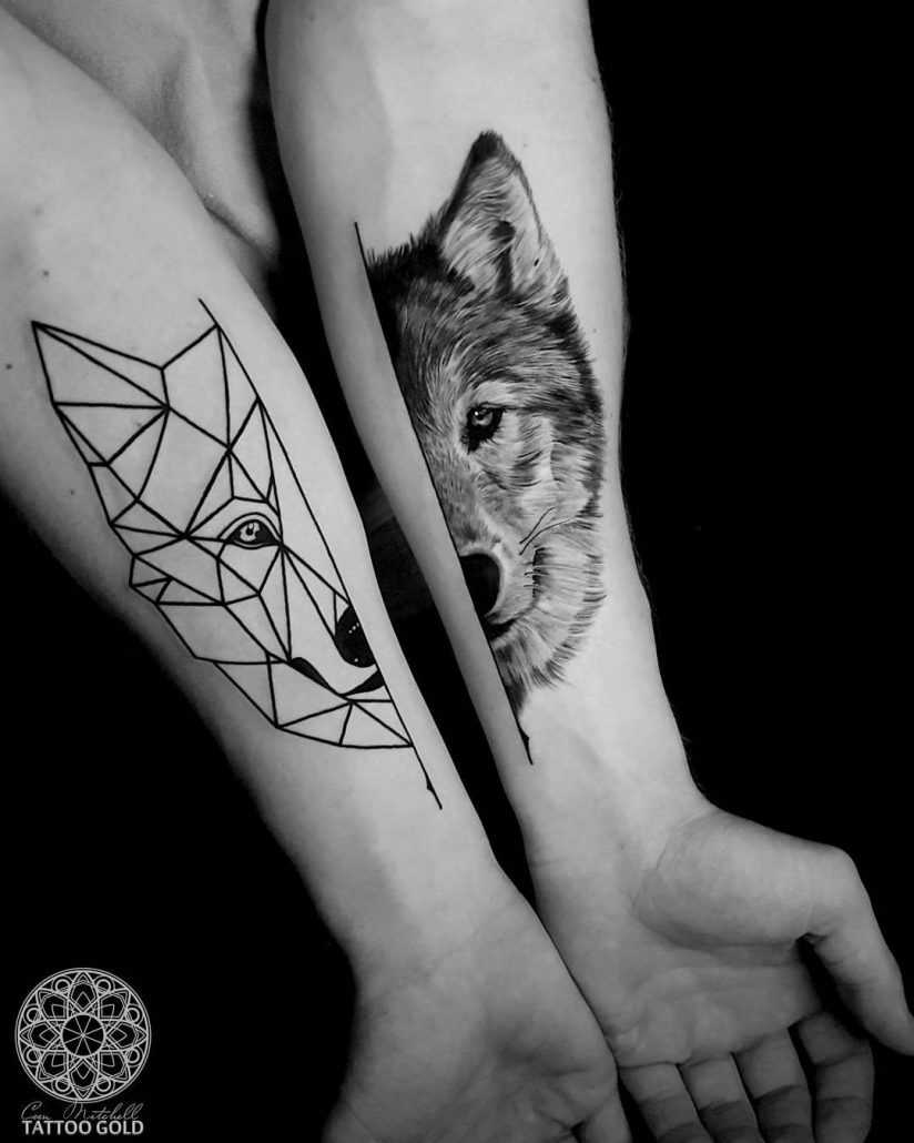 Размер предплечья позволяет нанести сюда изображение любого животного. Среди распространенных вариантов можно выделить льва, который является олицетворением смелости, власти, гордости и справедливости. А вот изображение львицы носит несколько иное значение. Считается, что такая татуировка будет символизировать женское счастье и радость материнства.