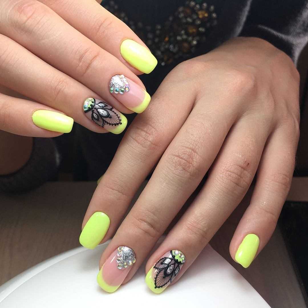 В этом сезоне, снова очень модным является дизайн с рисунками бабочек. Они символизируют лето, легкость и воздушность. Очень красиво и ярко смотрятся рисунки бабочек в сочетании с желтой, розовой и голубой основой. Если же, рисунки бабочек нанести на основу прозрачного, нюдового или молочного цвета, то такое сочетание будет смотреться очень нежно и утонченно.