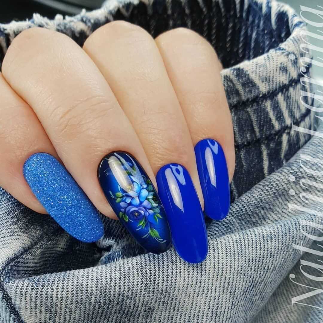 Романтичным девушкам будет впору маникюр с цветочным рисунком. Для летнего нейл-дизайна подойдут и луговые, и садовые цветы большого и маленького размера: маки, ромашки, васильки, пионы, благородные розы и орхидеи.