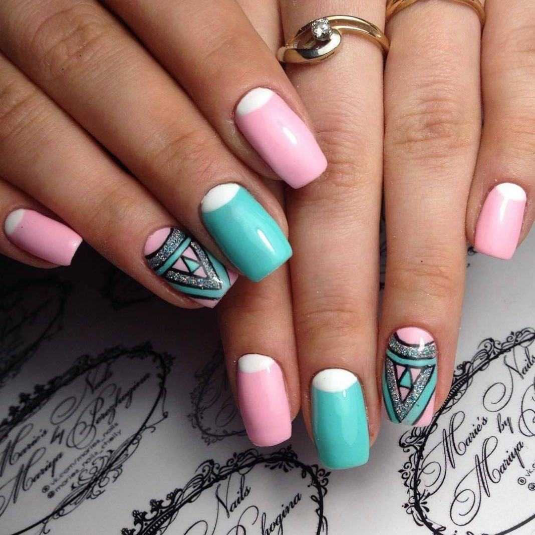 Более сложное сочетание линий и фигур необычной формы также подойдет для повседневной жизни. Но в целом он получается более активным, стильным. К тому же, такой вариант предполагает использование нескольких оттенков. Благодаря чему дизайн может выглядеть совершенно по-разному.