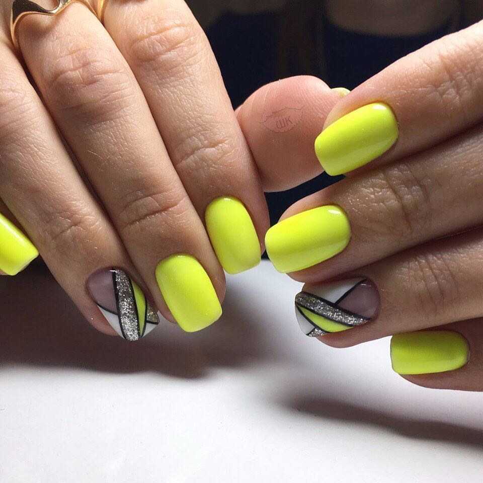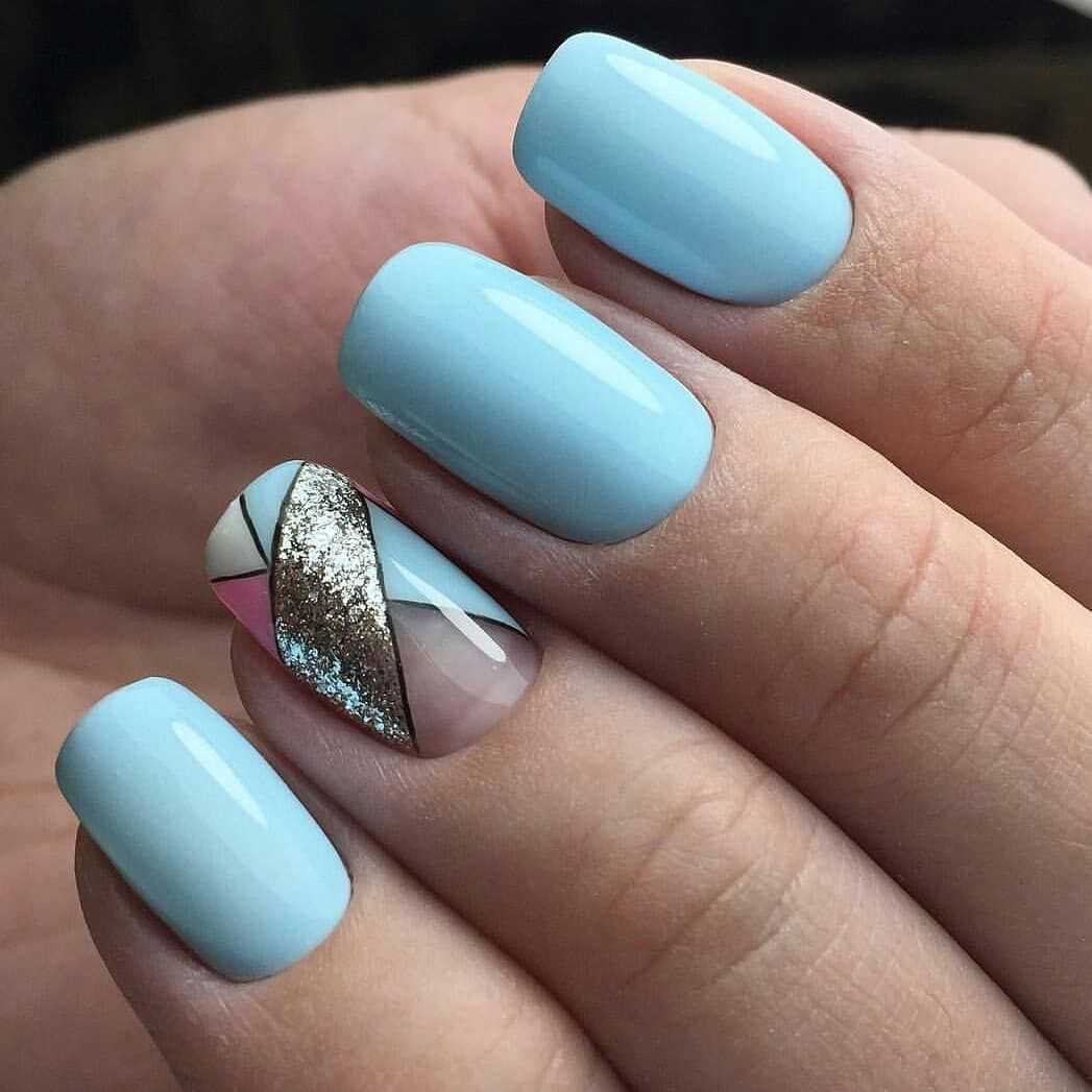 Замысловатые украшения с модными полосками и блестками или маникюр, выполненный с использованием негативного пространства, отлично смотрятся на квадратном маникюре. Геометрические рисунки также могут визуально удлинить короткие квадратные ногти, придав им более изящную форму.
