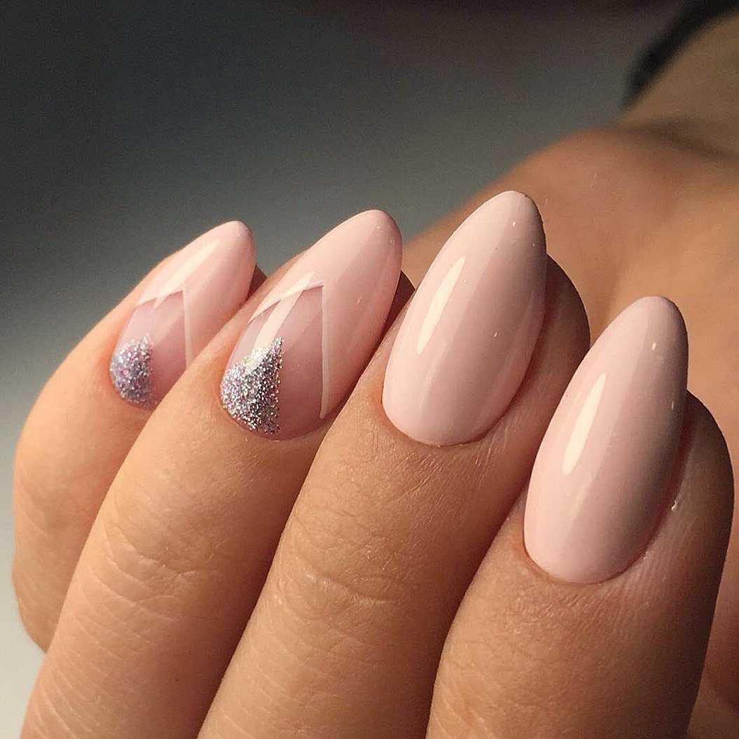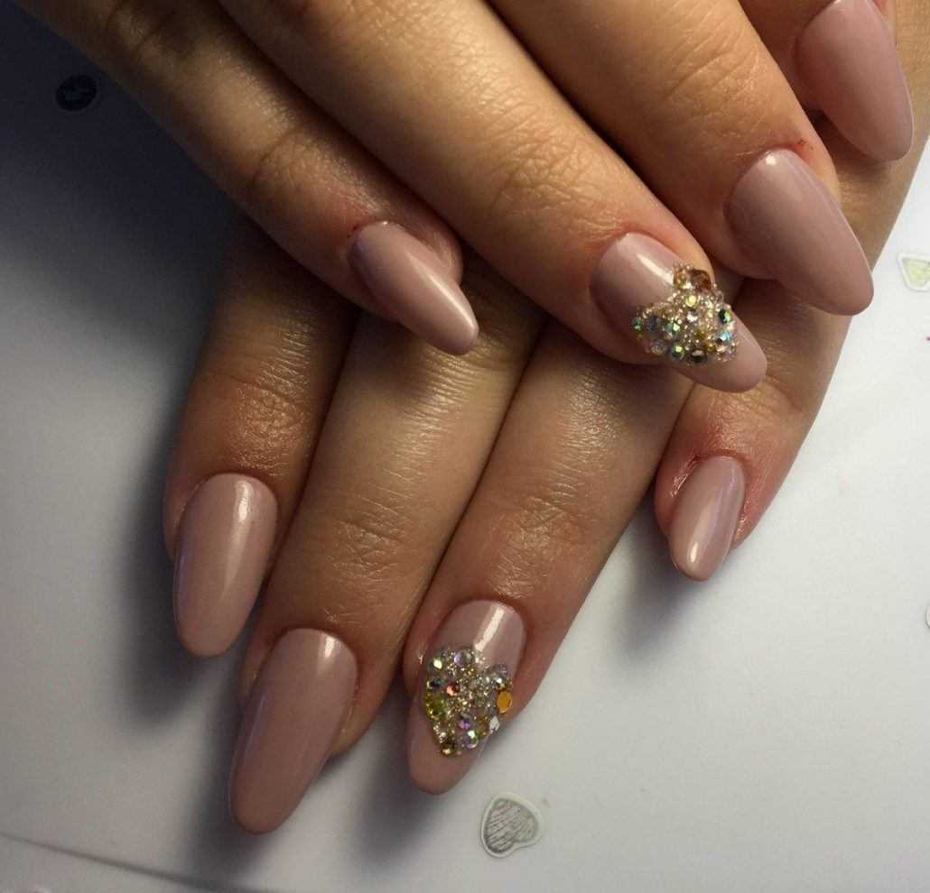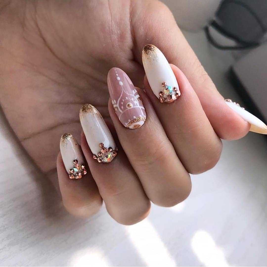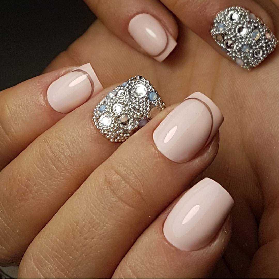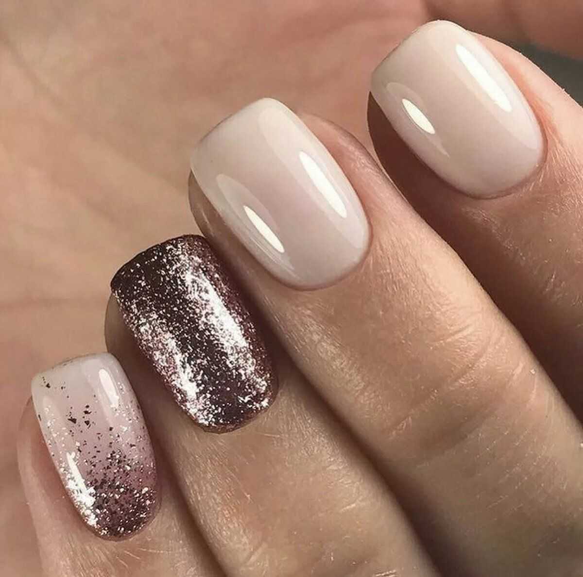 Бежевый и розовый смотрятся также нежно и воздушно, как и голубой маникюр. Сочетание бежевого и розового на первый взгляд кажется пустым и слишком светлым, поэтому многие нейл-мастера добавляют в дизайн блестящие детали в виде стразов, бульонок, глиттера, фольги.