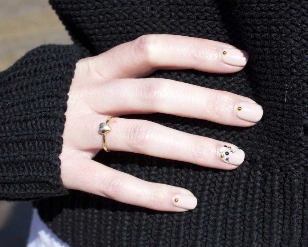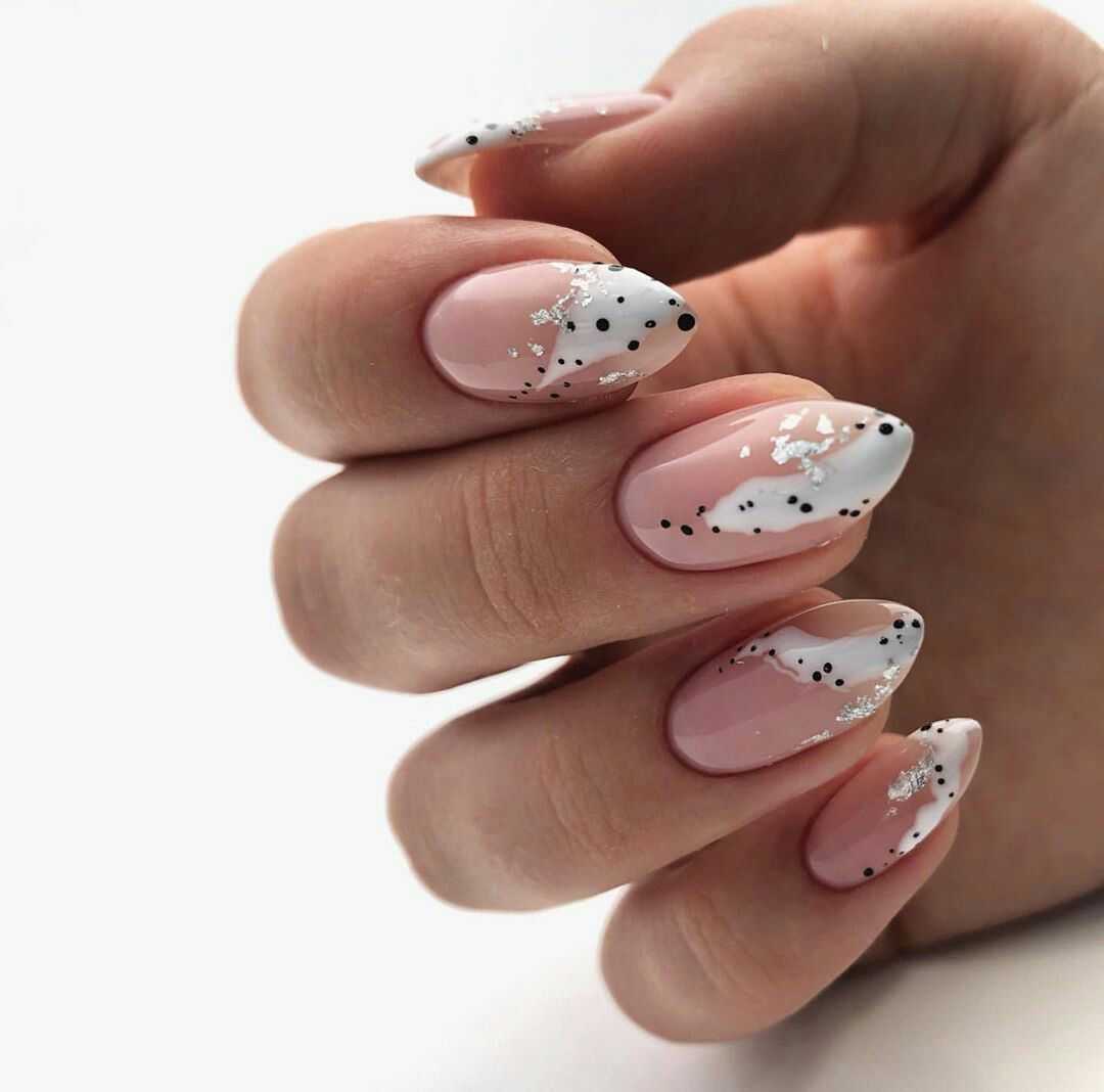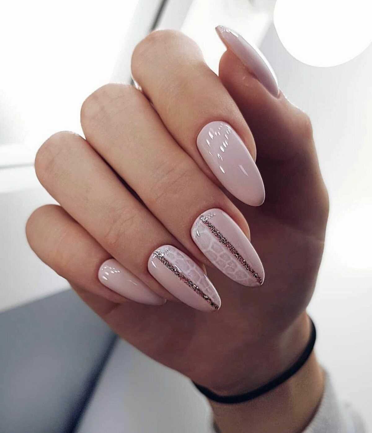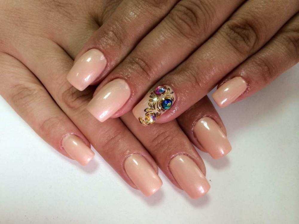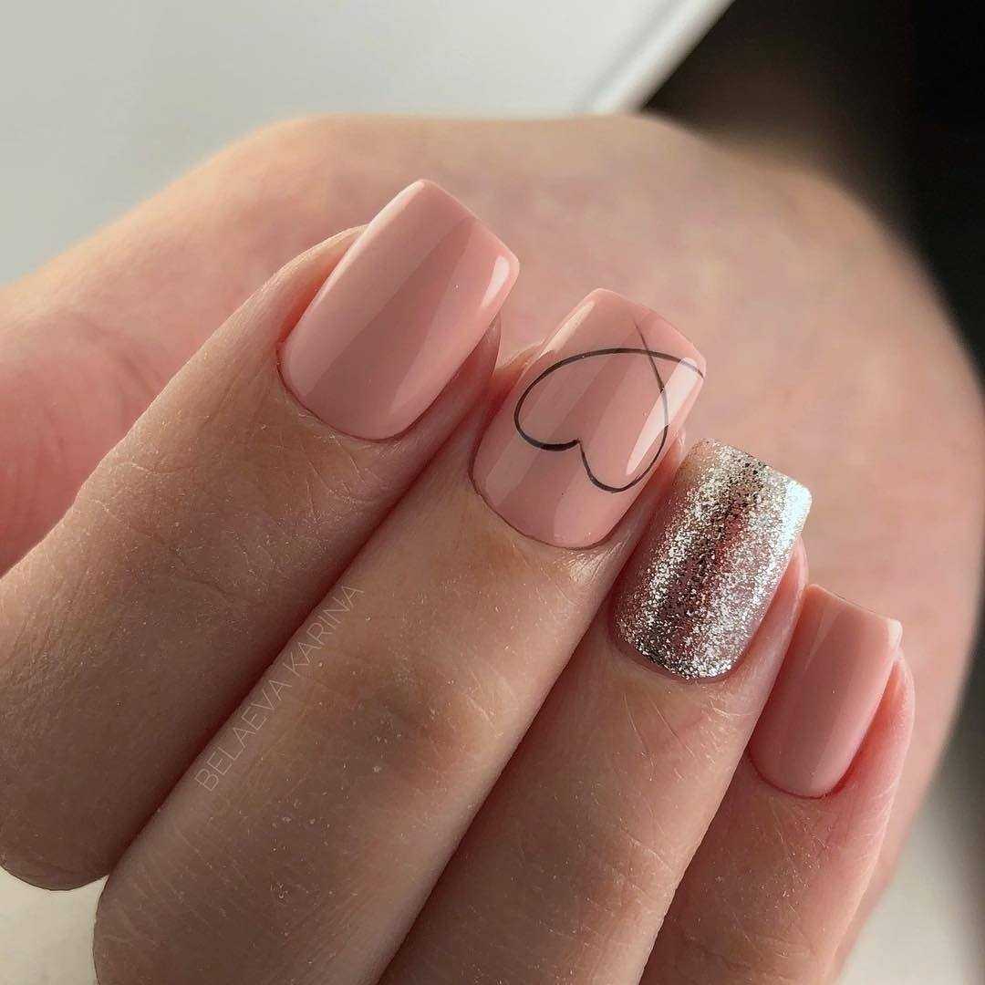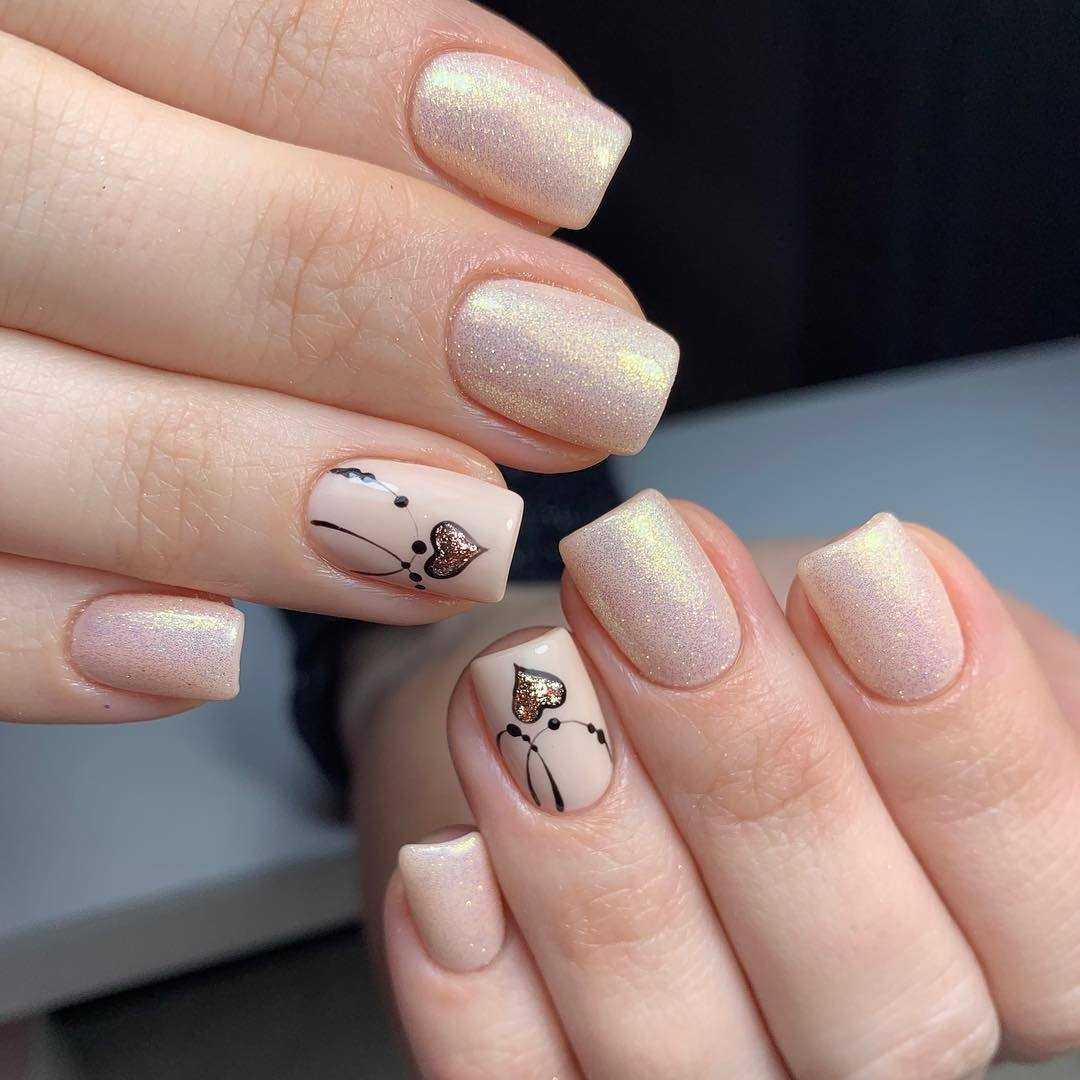 Бежевый и розовый смотрятся также нежно и воздушно, как и голубой маникюр. Сочетание бежевого и розового на первый взгляд кажется пустым и слишком светлым, поэтому многие нейл-мастера добавляют в дизайн блестящие детали в виде стразов, бульонок, глиттера, фольги.