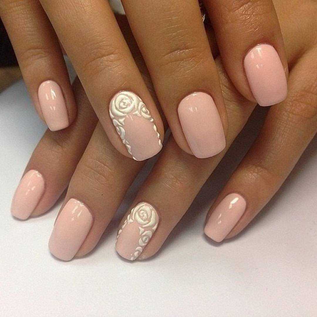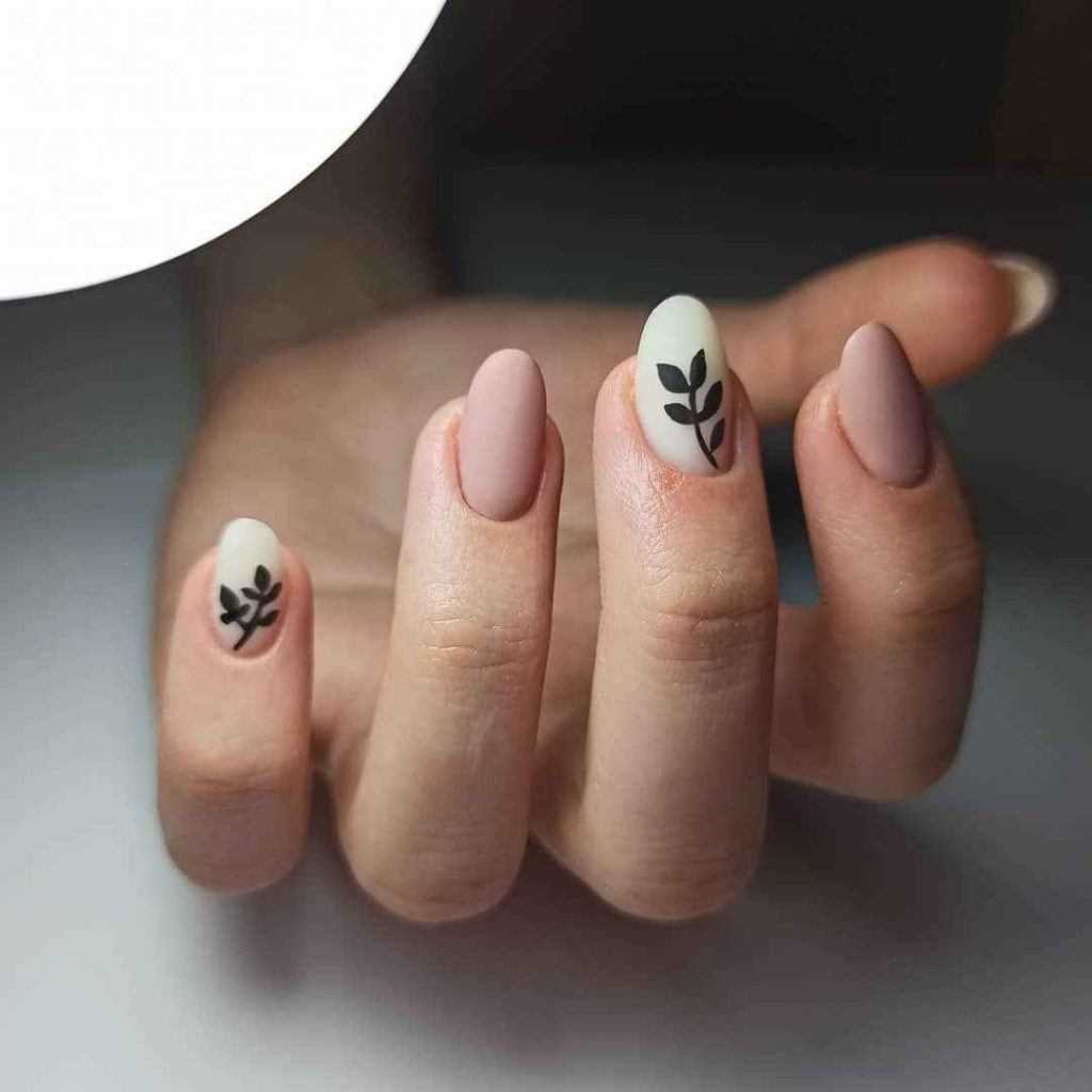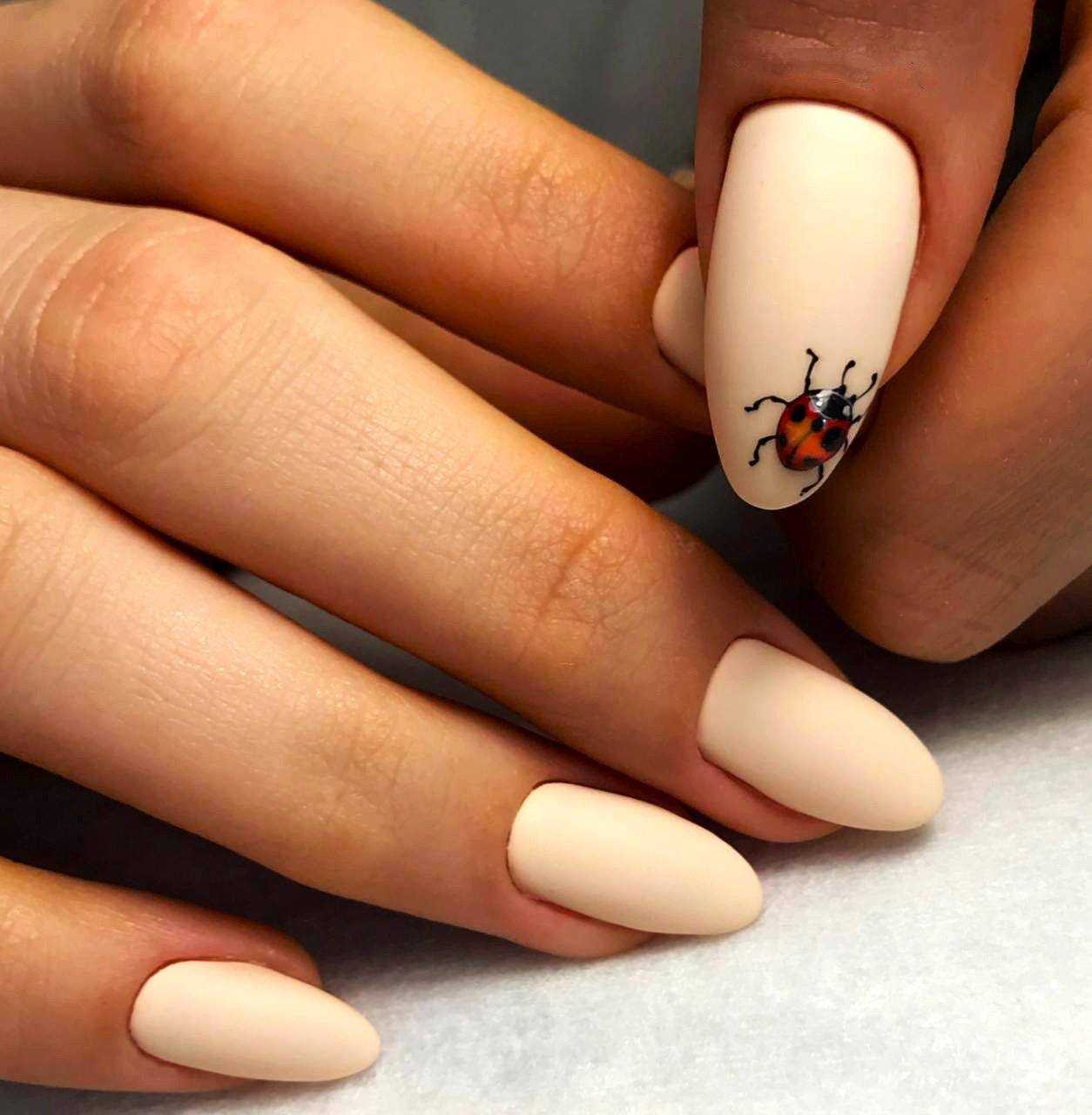 В тренде однотонное окрашивание ногтей в бежевый и розовый. Популярностью пользуются матовые нейл-арты, которые смотрятся еще нежнее и благороднее. Что касается декора, то на бежевом фоне красиво смотрятся веточки и листья, аккуратные полоски и точки, стразы и камни в прикорневой зоне. При желании можно дополнить бежево-розовый маникюр белым или черным гель-лаком. Сделайте с помощью этих дополнительных оттенков красивый акцентный декор с цветами или геометрией.