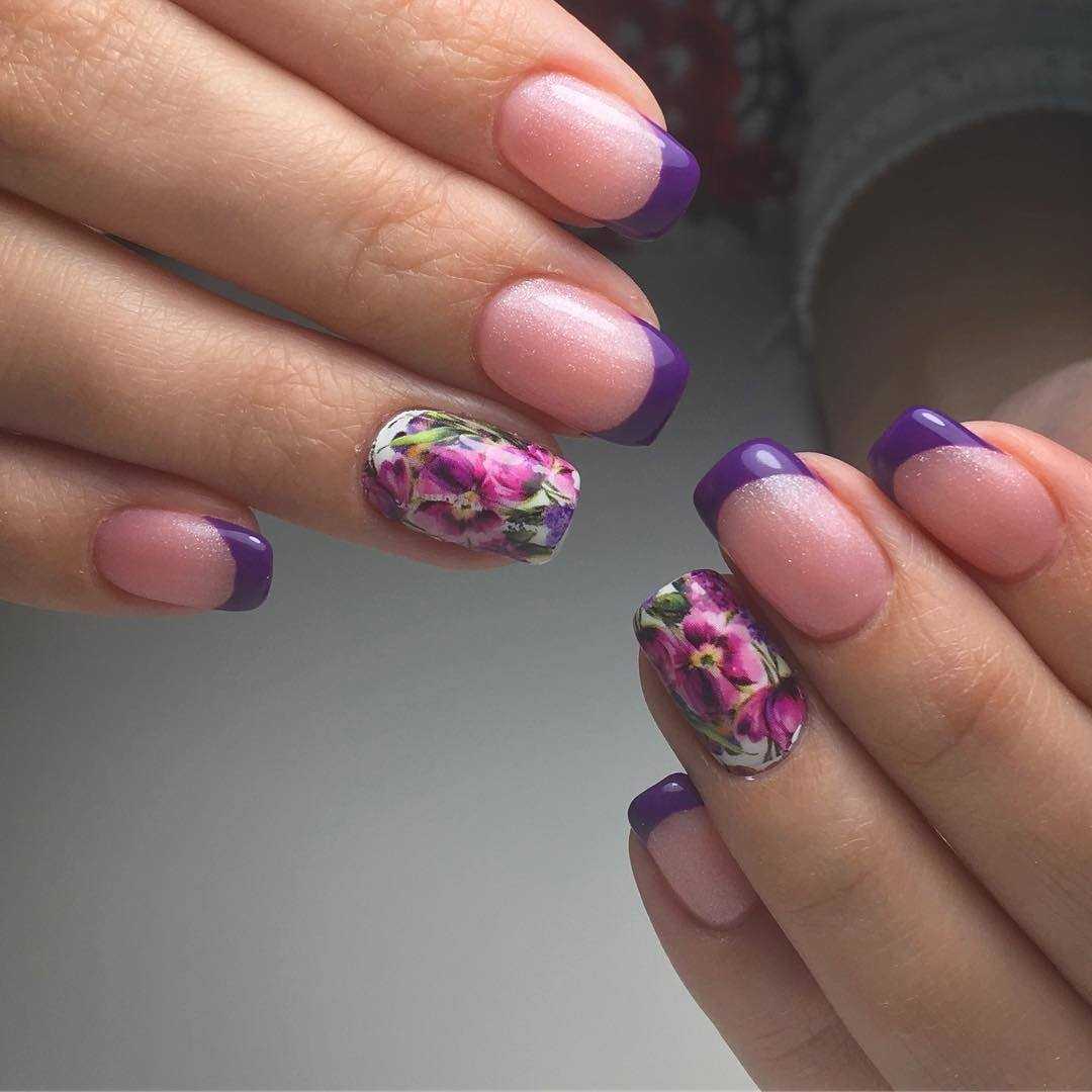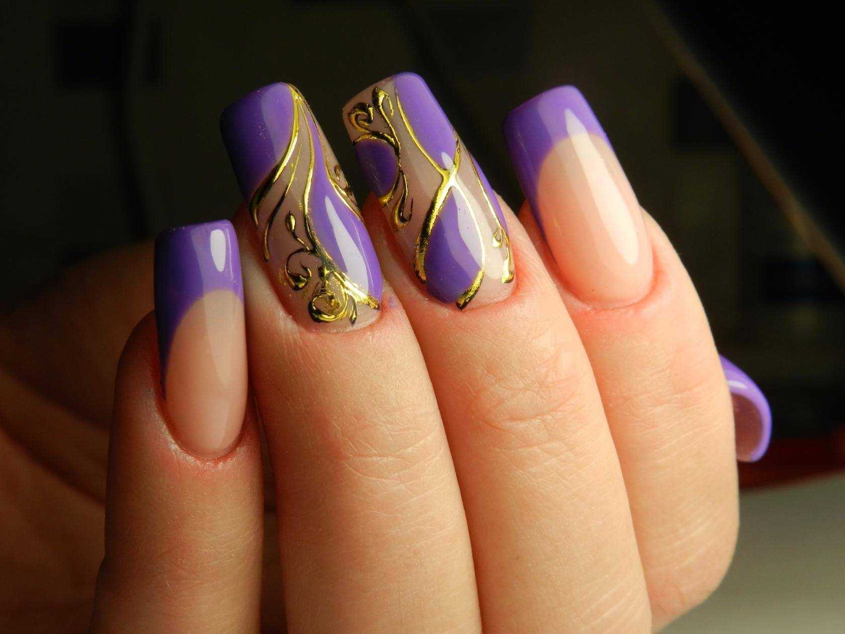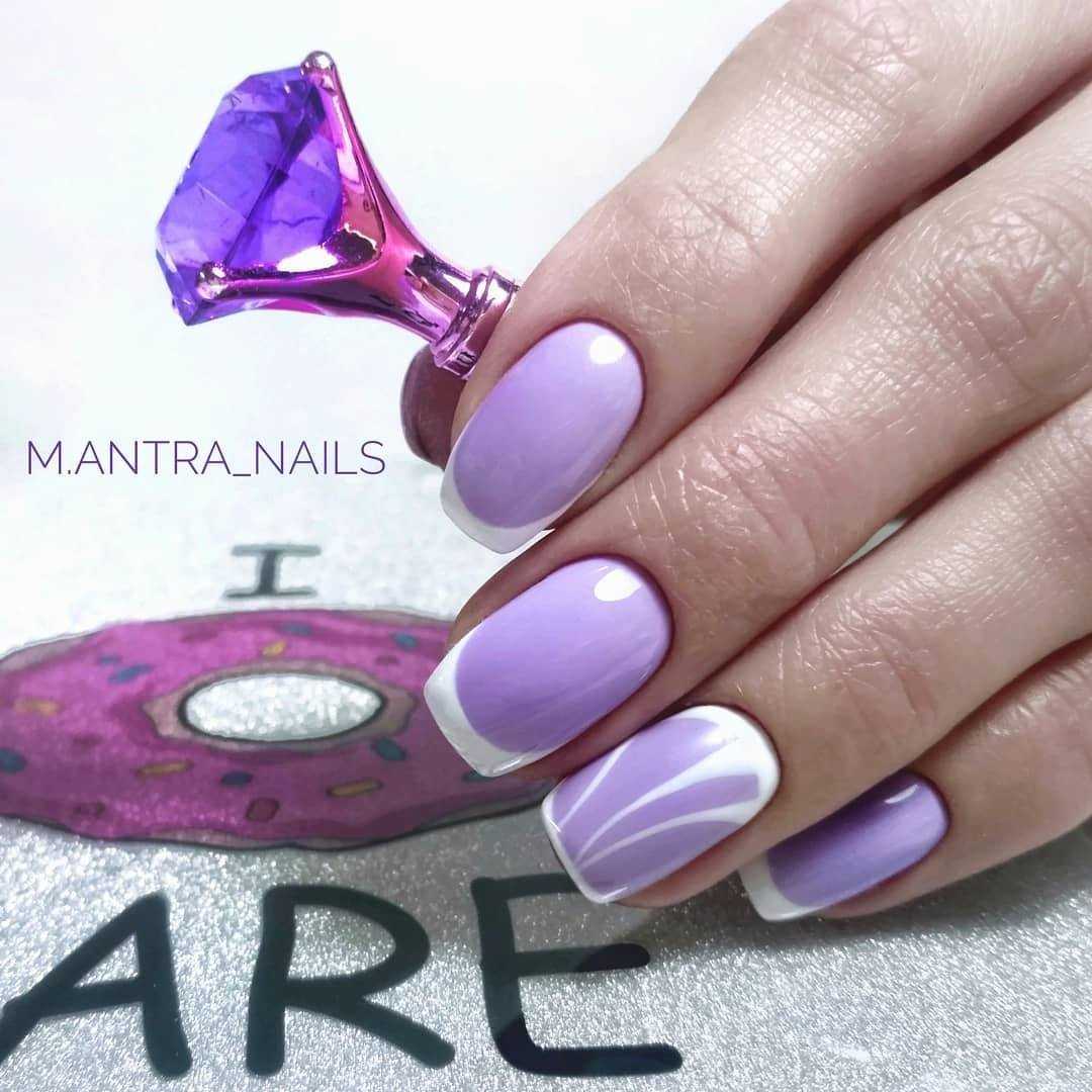 Несмотря на то, что прекрасный фиолетовый цвет не входит в перечень универсальных тонов для выполнения нейл-арта, он все же прекрасно подходит для выполнения классического французского маникюра. Такое необычное сочетание цвета и техники выглядит очень женственно, современно и стильно. Ведь именно такого эффекта и добивается любая современная модница.