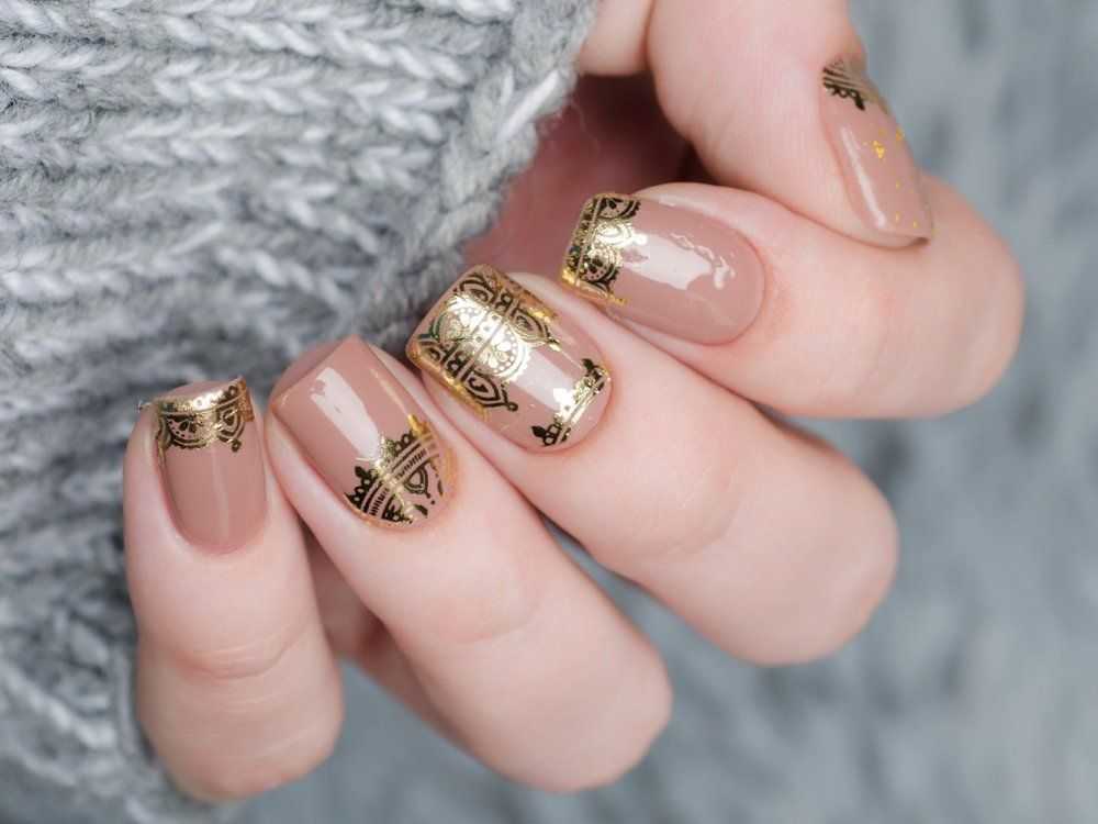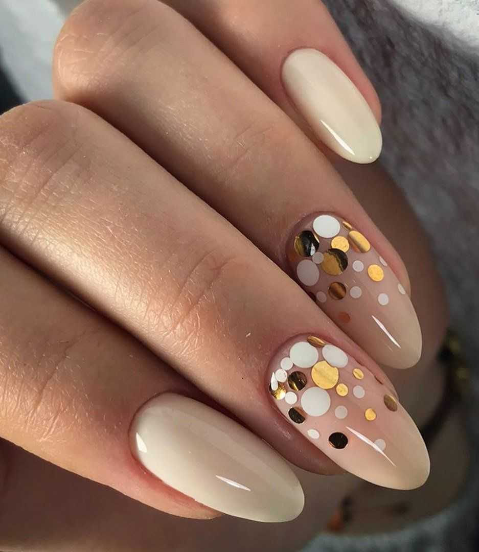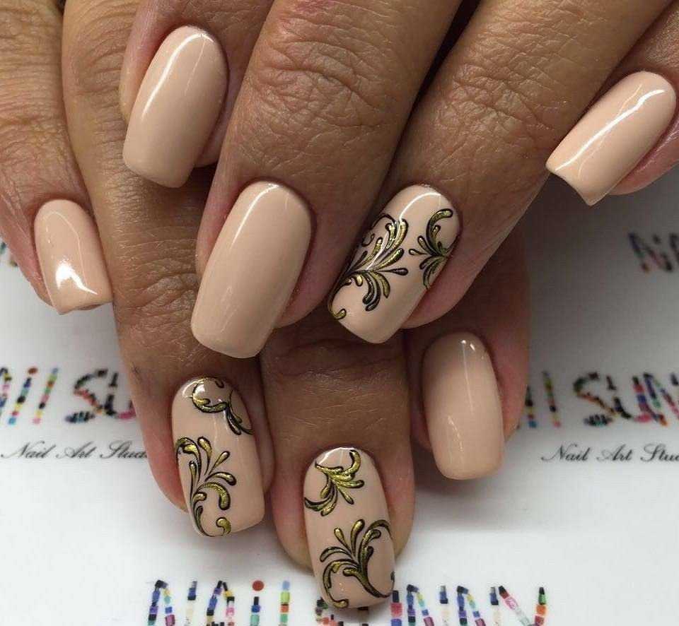 Золото и беж — один из самых красивых и эффектных сочетаний в маникюре. Выбирайте один из понравившихся вариантов и вы не прогадаете с маникюром в любое время года.