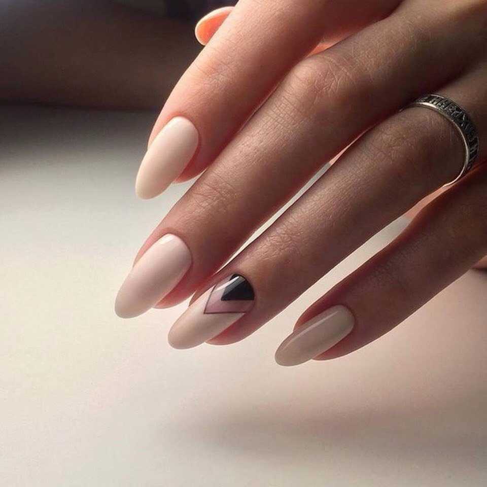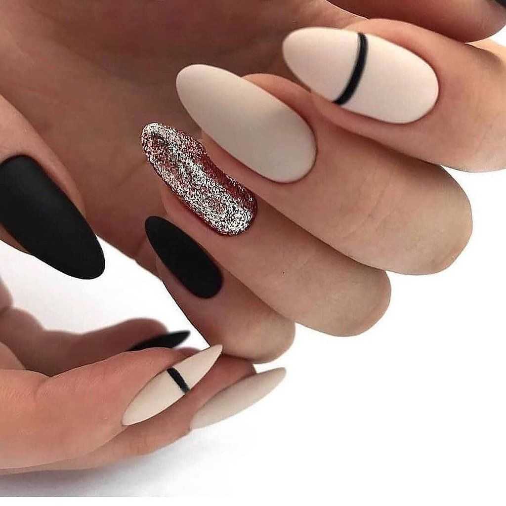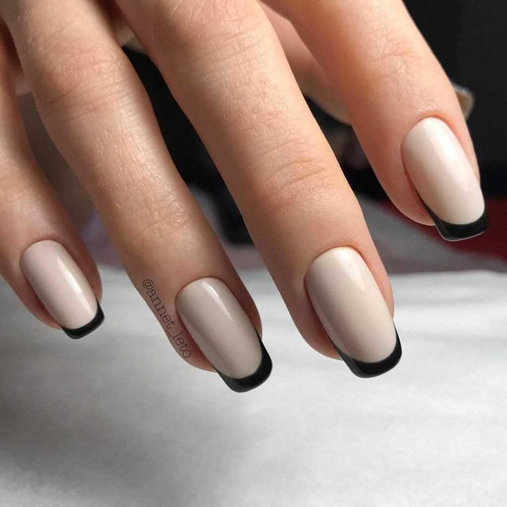 Сочетание бежевого маникюра с черным пользуется большой популярностью сегодня, это довольно строгие сочетания цветов, хотя выглядит очень красиво. Данное сочетание оттенков может быть в матовом исполнении или глянцевом, оба варианты подойдут и на короткие ногти и на длинные.