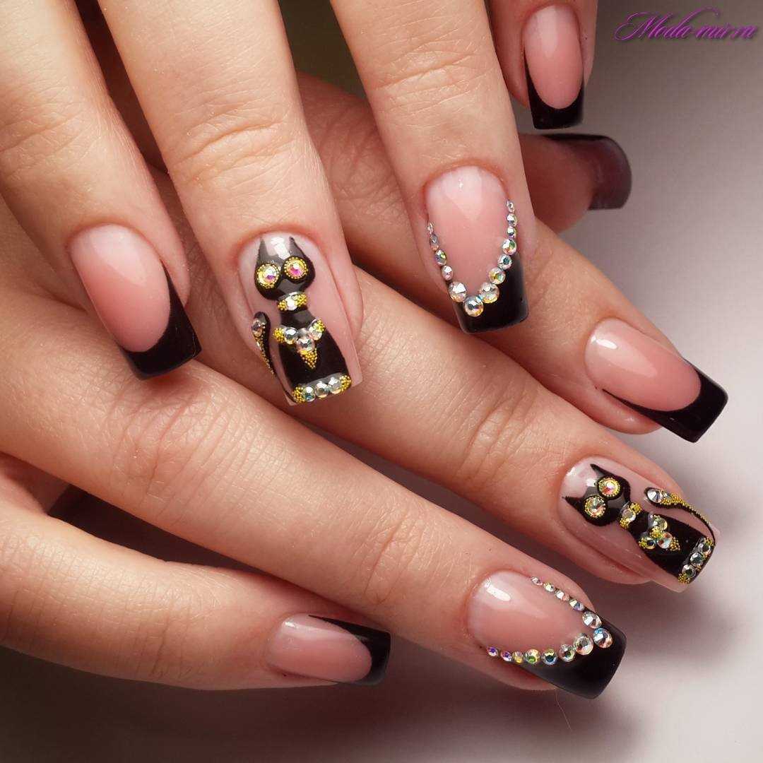 - французский маникюр – черный цвет при этом используется по краю ногтевой пластины