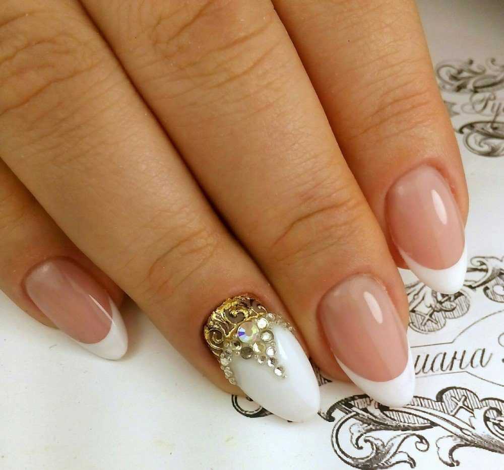 - французский и лунный маникюр – шикарно смотрятся на миндальных, квадратных, овальных ногтях