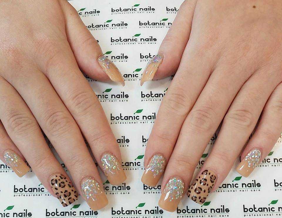 Хищные принты вновь вернулись на ноготки модниц, только в слегка измененном виде. Узор стал умереннее, располагают его на 1-2 ноготках. Изменились и основные оттенки маникюра. Теперь вместо насыщенного черного, оранжевого, красного и других тонов, нейл-мастера предпочитают использовать сдержанные бежевые и коричневые оттенки.