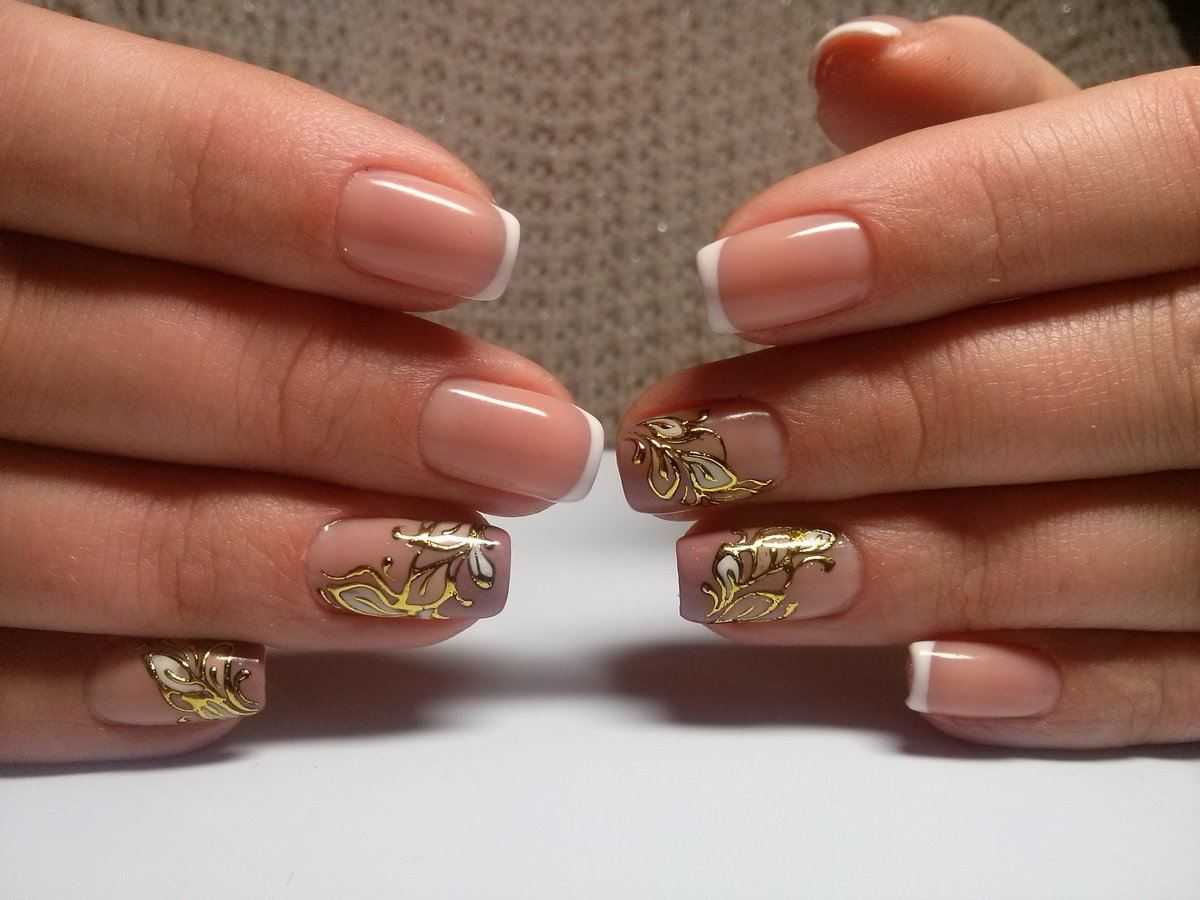 Одним из самых нежных и романтичных считается рисунок в виде бабочек. Они невероятно красиво смотрятся вместе с френчем в золотом цвете. Также все чаще девушки предпочитают дополнять маникюр рисунком в виде животных или же анималистичным принтом. В данном случае это действительно гармоничное сочетание.