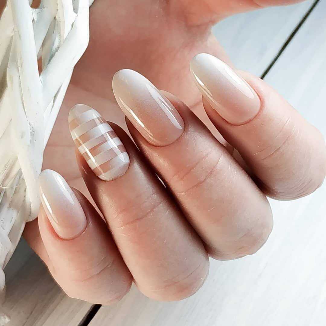 Бежевый оттенок лака или геля легко становится неотъемлемой частью маникюра – омбре. Этот светлый оттенок стал популярным для техники градиентного маникюра благодаря абсолютной сочетаемости с любыми другими цветами. Сложно представить себе неподходящие комбинации.