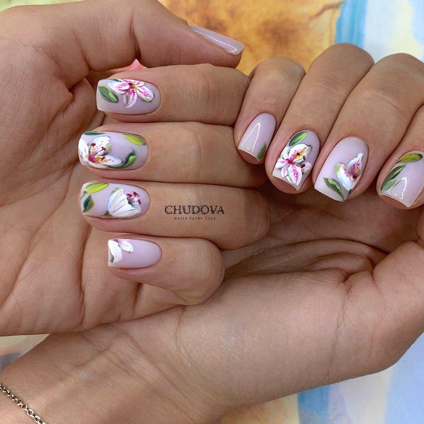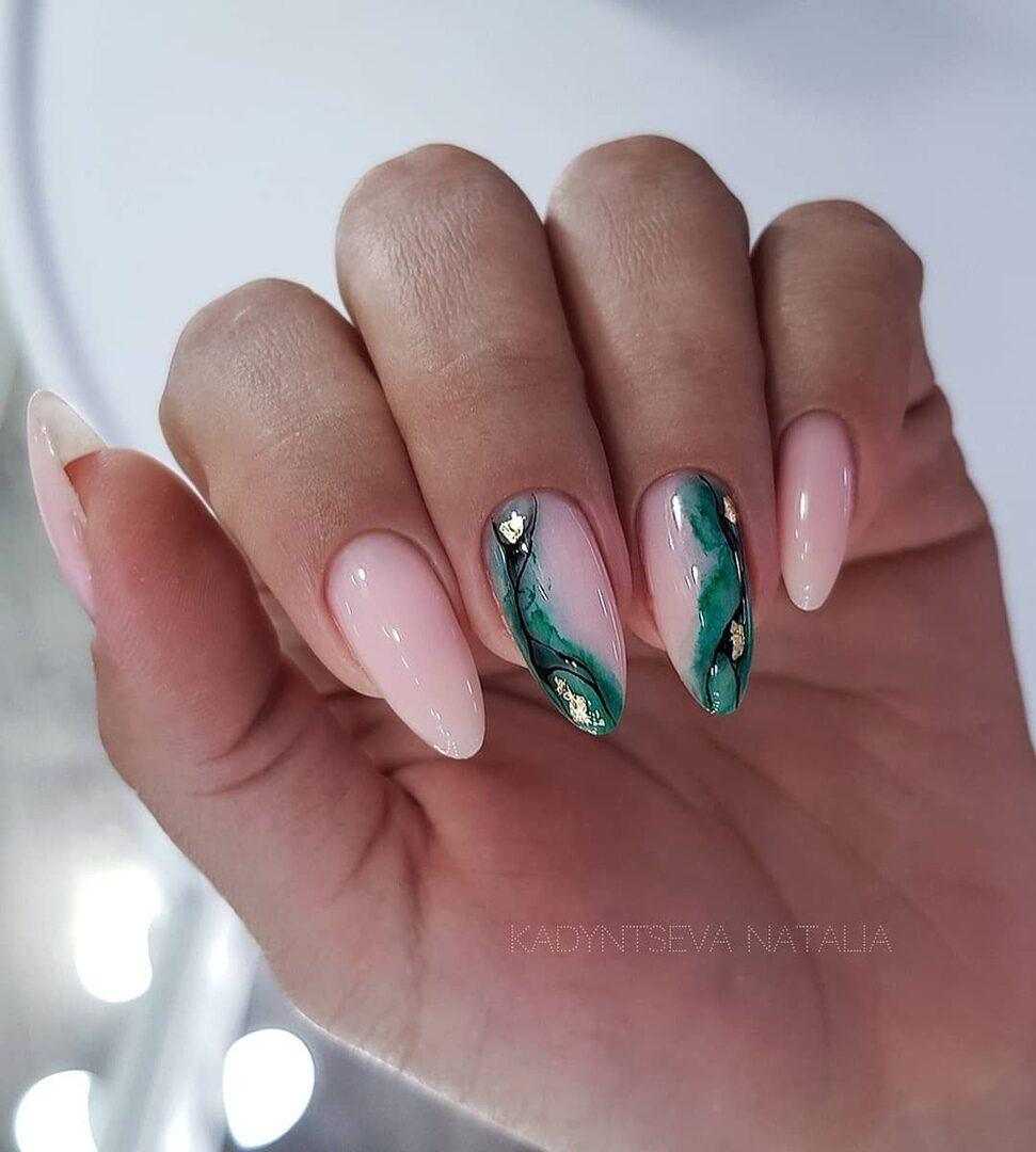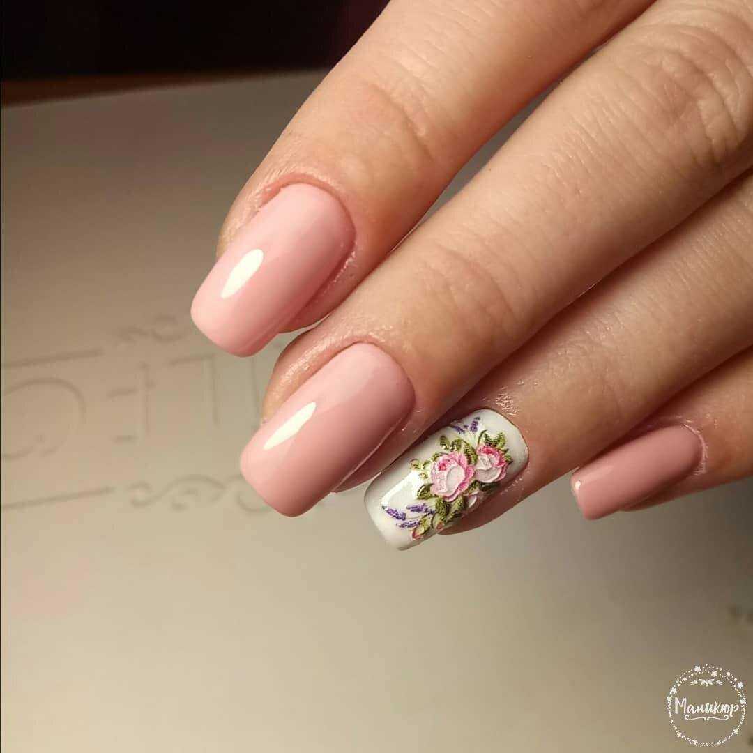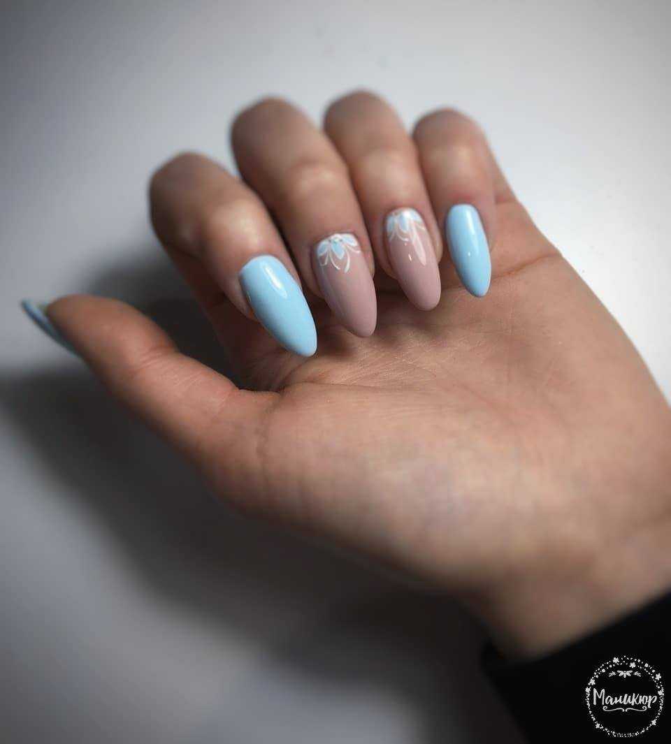 Для того, чтоб создать максимально нежный и женственный бежевый маникюр, необходимо выполнить его в сочетании с голубым оттенком. В 2020 году можно выполнить такой маникюр совершенно в любой технике, с роскошными цветочными узорами, рисунками забавных зверей, дополнить дизайн стразами или применить втирку. Такой легкий и гармоничный маникюр будет смотреться очень интересно и привлекательно не только в повседневном применении, но и для праздничного образа.
