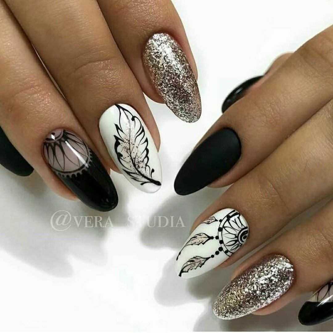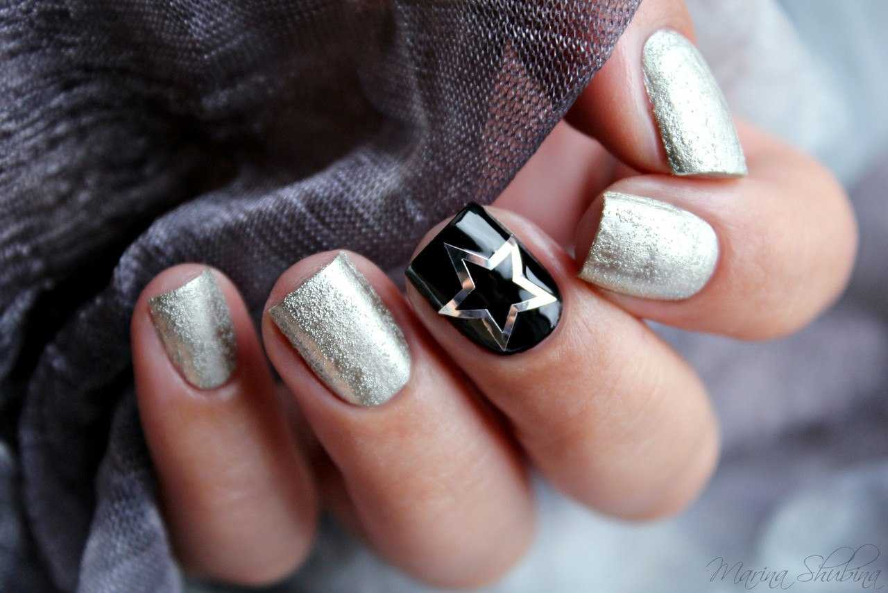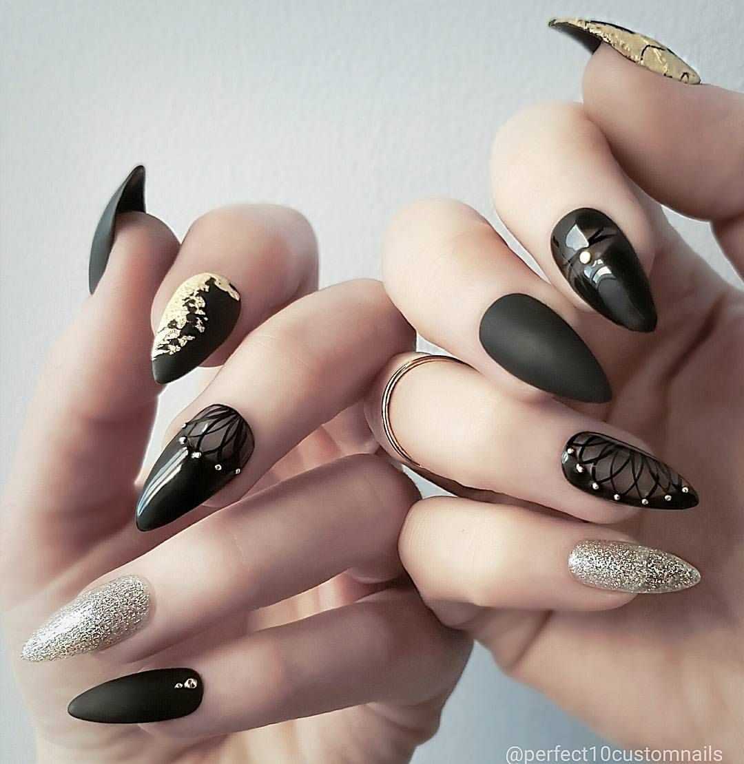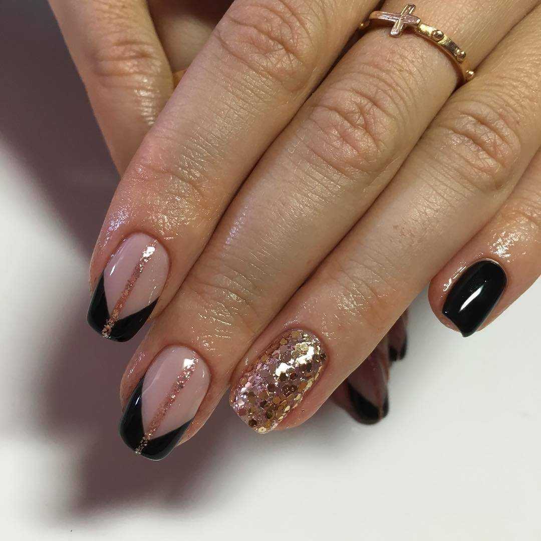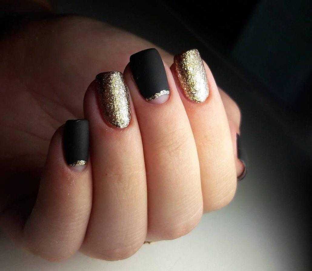 Сочетание черного и золотого цветов выглядит дорого и благородно. Такой маникюр не для повседневной носки, чаще всего он используется в торжественных образах. Дизайн ногтей обязательно должен гармонировать с остальным образом и аксессуарами.