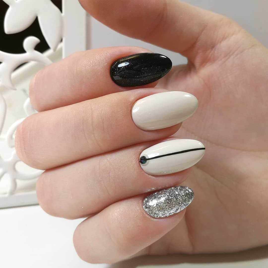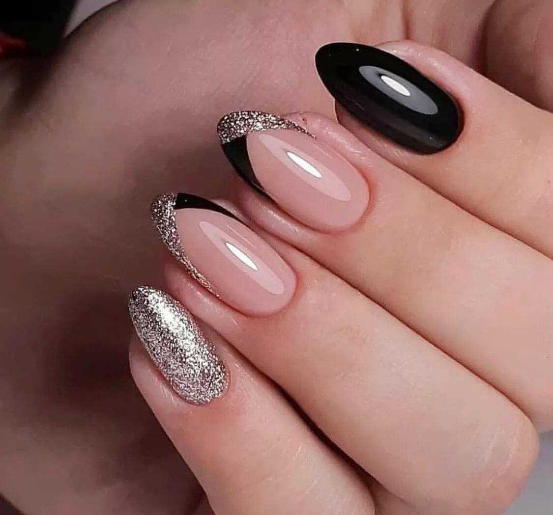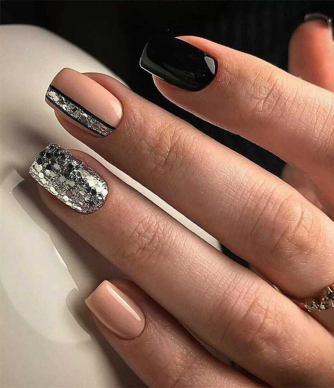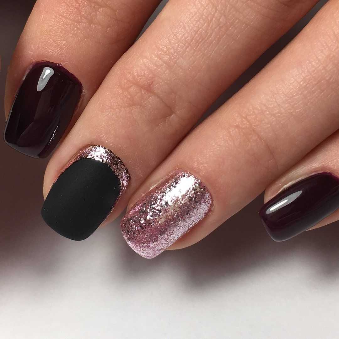 Сочетайте черный цвет с кремовым, бежевым, молочным и другими нейтральными тонами. На светлом фоне можно расположить узоры в черном цвете, например, кружево, сердечки, полоски. На коротких ногтях отлично смотрится сочетание черного и розового цвета. Такой тандем позволяет создать легкий повседневный дизайн с однотонным покрытием и акцентами в виде блесток.