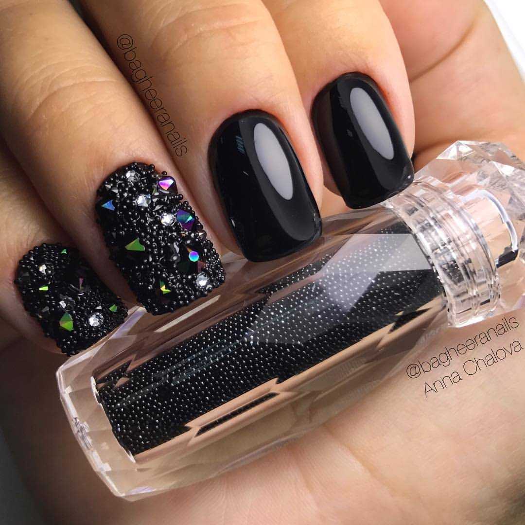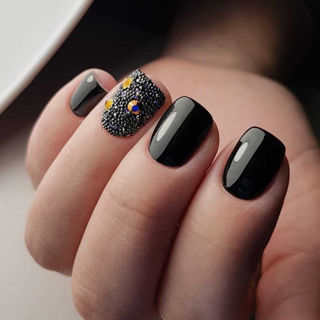 Черный гель-лак пока пылится на полках у многих нейл-мастеров. Девушки предпочитают легкие и нежные оттенки, которые отличаются универсальностью и гармоничным сочетанием с любым декором. Однако черный маникюр по-прежнему находит своих преданных поклонниц и дарит им потрясающие нейл-арты в насыщенном и глубоком цвете.